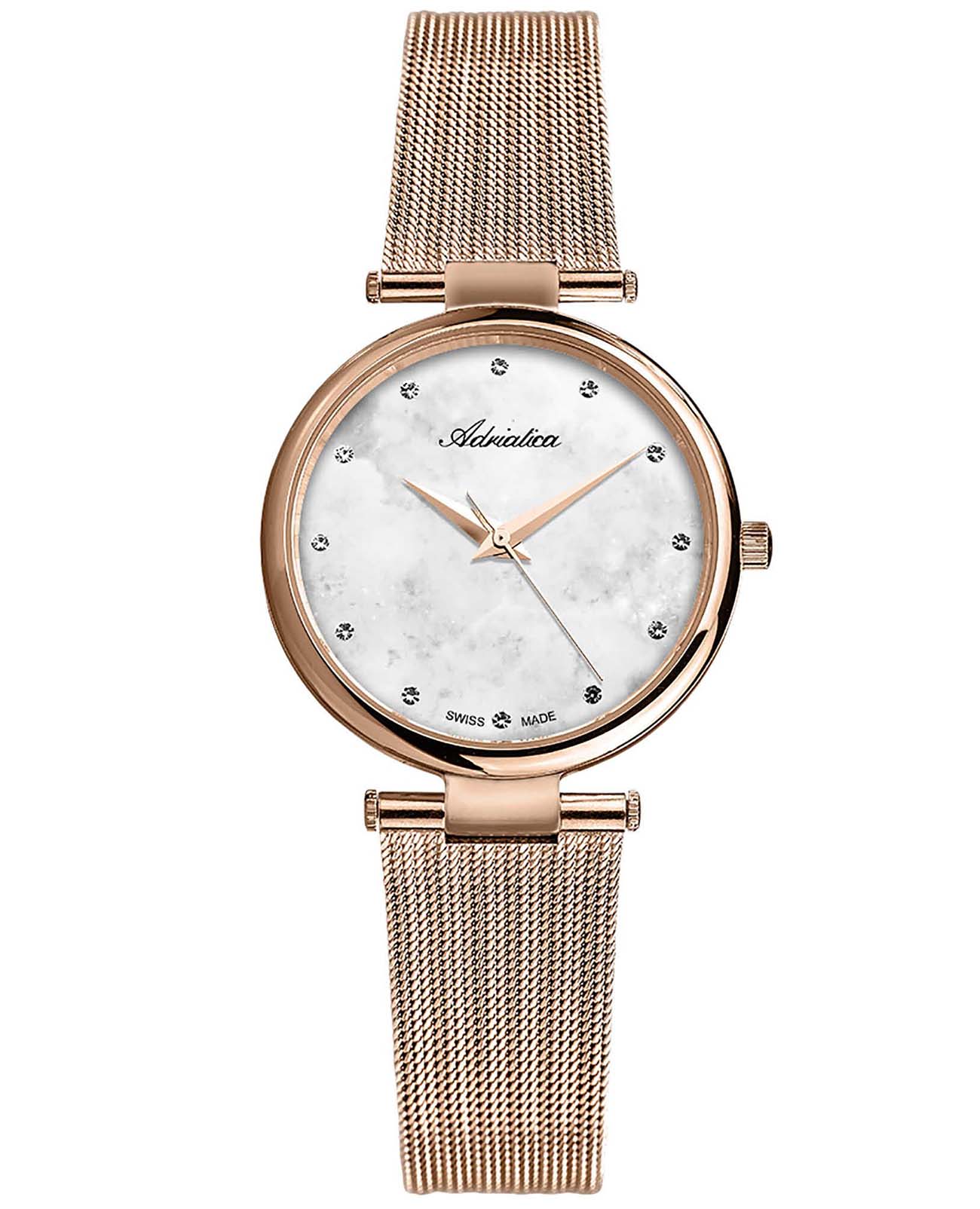 Женские часы с минеральным стеклом Adriatica A3689.914FQ, кварцевый механизм с высокой точностью. Класс водозащиты: 30 метров, позволит защитить корпус от случайных брызг или капель дождя. Корпус часов изготовлен из стали, золотистого цвета.