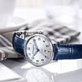 Мужские механические швейцарские часы с автоподзаводом Aerowatch Les Grandes Classiques 60996 AA01. Сапфировое стеклоСапфировое стеклоПрочный и надёжный материал из кристалла сапфира синтетического происхождения, характеризующийся особой твёрдостью и устойчивостью к царапинам и повреждениям. устойчивое к появлению царапин, обладающее высокой прозрачностью. Корпус изготовлен из нержавеющей стали. В часах установлен калибр 2824-2 ETA с 25 камнями, ротором. Серебристый sunray циферблат украшен синими арабскими цифрами и скелетонизированными стрелками, окошко даты в положении 6 часов. Класс водозащиты: 50 метров, позволит защитить корпус от случайных брызг или капель дождя. Кожаный ремешок на стандартной застёжке.