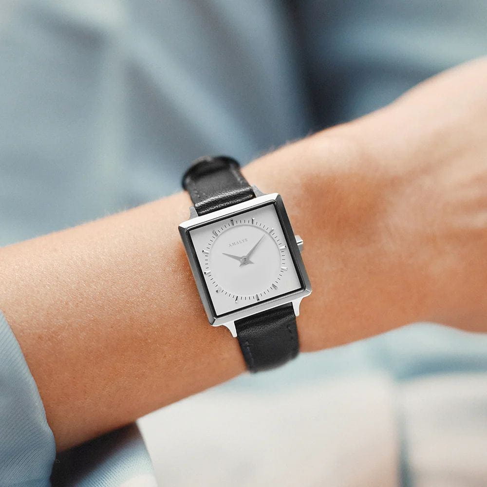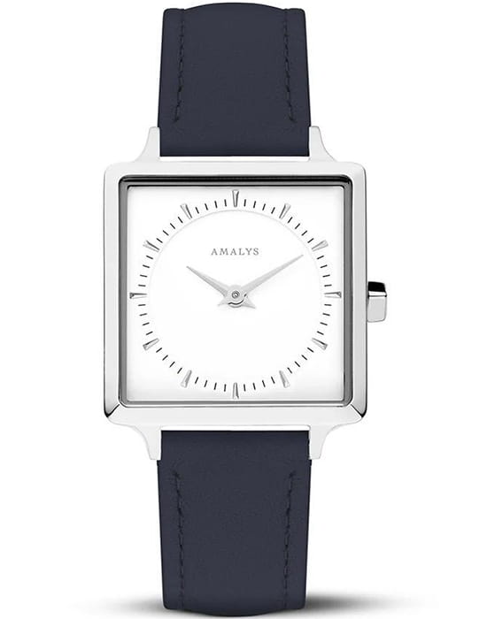 Amalys AMW-008 — женская модель с утончённой минималистичной эстетикой, где квадратный корпус размером 25 мм подчёркивает современный характер и чистоту линий. Механизм — точный кварцевый, обеспечивающий стабильный ход и надёжность в повседневном использовании. Поверхность циферблата оформлена в лаконичном стиле с тонкими метками и стрелками, создающими гармонию и визуальную лёгкость. Защитную функцию выполняет минеральное стеклоМинеральное стеклоМинеральное стекло представляет собой искусственно выращенный минерал кварца. Такое стекло отличается особой устойчивостью к повреждениям и царапинам. Уступает по некоторым качествам сапфировому стеклу., устойчивое к механическим воздействиям и сохраняющее читаемость при ежедневной носке. Кожаный ремешок на стандартной застежке а, его гибкая структура обеспечивает комфортное прилегание к запястью и визуальную утончённость. Единство корпуса и ремешка создаёт целостный образ, а изысканная простота дизайна делает модель универсальной — она одинаково уместна и в деловой обстановке, и в повседневных сочетаниях.