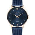 Amalys AMW-181 — женская модель с утончённым классическим дизайном, в которой сочетаются элегантность и практичность. Круглый корпус диаметром 33 мм выполнен из нержавеющей стали с PVD-покрытиемPVDУльтратонкое покрытие наносится в технике вакуумного напыления, сочетает в себе нитрид титана особой прочности со слоем золота или оксида хрома. Несёт в себе декоративную или защитную функцию., гармонирующим с браслетом шириной 16 мм в том же исполнении. Защитную функцию выполняет сапфировое стеклоСапфировое стеклоПрочный и надёжный материал из кристалла сапфира синтетического происхождения, характеризующийся особой твёрдостью и устойчивостью к царапинам и повреждениям., стойкое к царапинам и сохраняющее прозрачность. Механизм — кварцевый, обеспечивающий точность и стабильность хода. Стальной браслет с PVD-покрытиемPVDУльтратонкое покрытие наносится в технике вакуумного напыления, сочетает в себе нитрид титана особой прочности со слоем золота или оксида хрома. Несёт в себе декоративную или защитную функцию. миланского плетения на раскладном замкеРаскладной замокДанный вариант застежки используется только на часах с металлическим браслетом. Отличительная особенность такого крепления в том, что длина браслета становится универсальной и вы можете самостоятельно отрегулировать нужный вам размер – застежка просто двигается по браслету часов. который сочетает надёжность фиксации и удобство повседневного использования. Водозащита 3 ATM защищает часы от случайных брызг и дождя. Циферблат с римскими индексами и изящными стрелками подчёркивает классическую эстетику модели, делая её уместной как в повседневных образах, так и в торжественной обстановке.