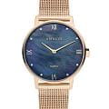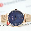 Amalys AMW-182 — женская модель с утончённым классическим дизайном, в которой сочетаются элегантность и практичность. Круглый корпус диаметром 33 мм выполнен из нержавеющей стали с PVD-покрытиемPVDУльтратонкое покрытие наносится в технике вакуумного напыления, сочетает в себе нитрид титана особой прочности со слоем золота или оксида хрома. Несёт в себе декоративную или защитную функцию., гармонирующим с браслетом шириной 16 мм в том же исполнении. Защитную функцию выполняет сапфировое стеклоСапфировое стеклоПрочный и надёжный материал из кристалла сапфира синтетического происхождения, характеризующийся особой твёрдостью и устойчивостью к царапинам и повреждениям., стойкое к царапинам и сохраняющее прозрачность. Механизм — кварцевый, обеспечивающий точность и стабильность хода. Стальной браслет с PVD-покрытиемPVDУльтратонкое покрытие наносится в технике вакуумного напыления, сочетает в себе нитрид титана особой прочности со слоем золота или оксида хрома. Несёт в себе декоративную или защитную функцию. миланского плетения на раскладном замкеРаскладной замокДанный вариант застежки используется только на часах с металлическим браслетом. Отличительная особенность такого крепления в том, что длина браслета становится универсальной и вы можете самостоятельно отрегулировать нужный вам размер – застежка просто двигается по браслету часов. который сочетает надёжность фиксации и удобство повседневного использования. Водозащита 3 ATM защищает часы от случайных брызг и дождя. Циферблат с римскими индексами и изящными стрелками подчёркивает классическую эстетику модели, делая её уместной как в повседневных образах, так и в торжественной обстановке.