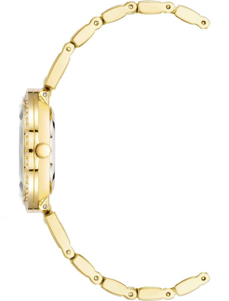 Американские женские наручные часы Anne Klein Crystal 3902LVGB, кварцевый механизм с высокой точностью. Класс водозащиты: 30 метров, позволит защитить корпус от случайных брызг или капель дождя. Корпус часов изготовлен из стали, золотистого цвета.