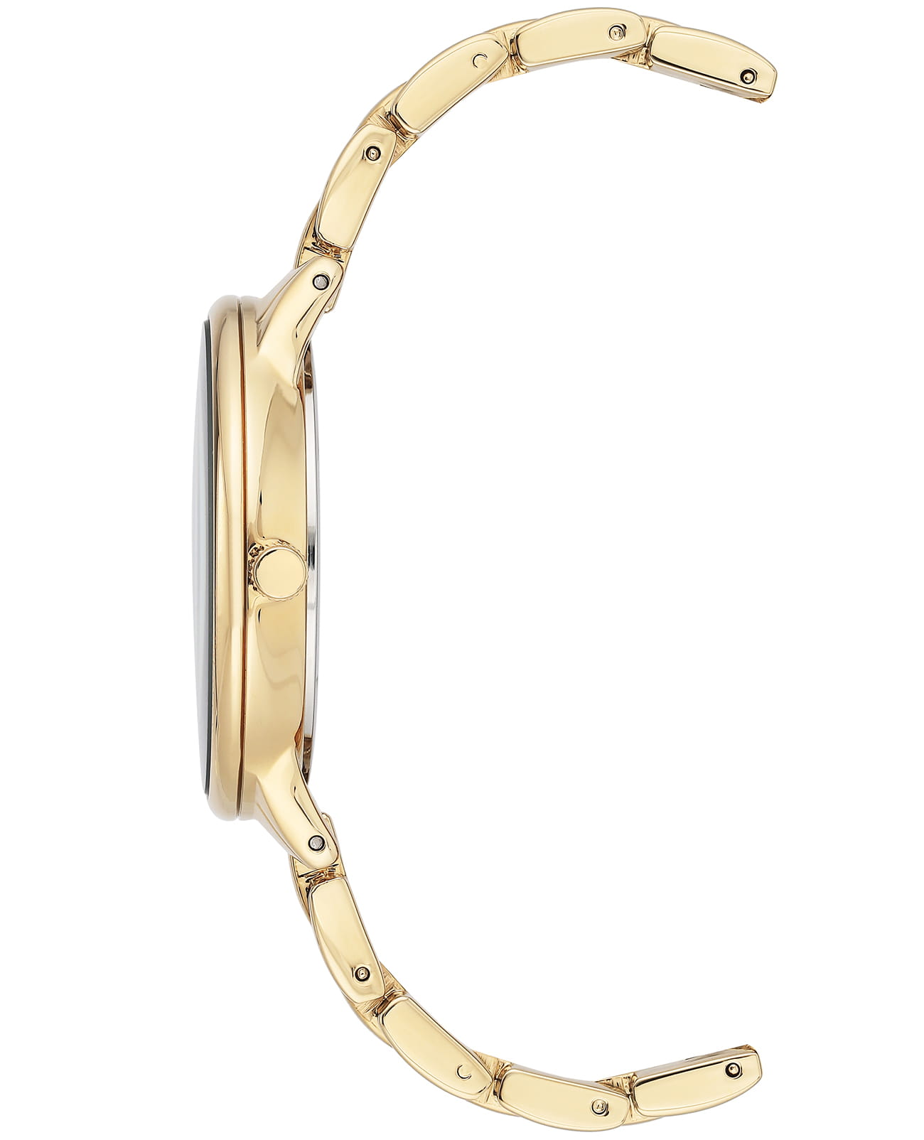 Женские американские наручные часы Anne Klein Diamond 3750BMGB, кварцевый механизм с высокой точностью. Класс водозащиты: 30 метров, позволит защитить корпус от случайных брызг или капель дождя. Корпус часов изготовлен из стали, позолоченного цвета.