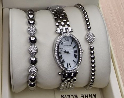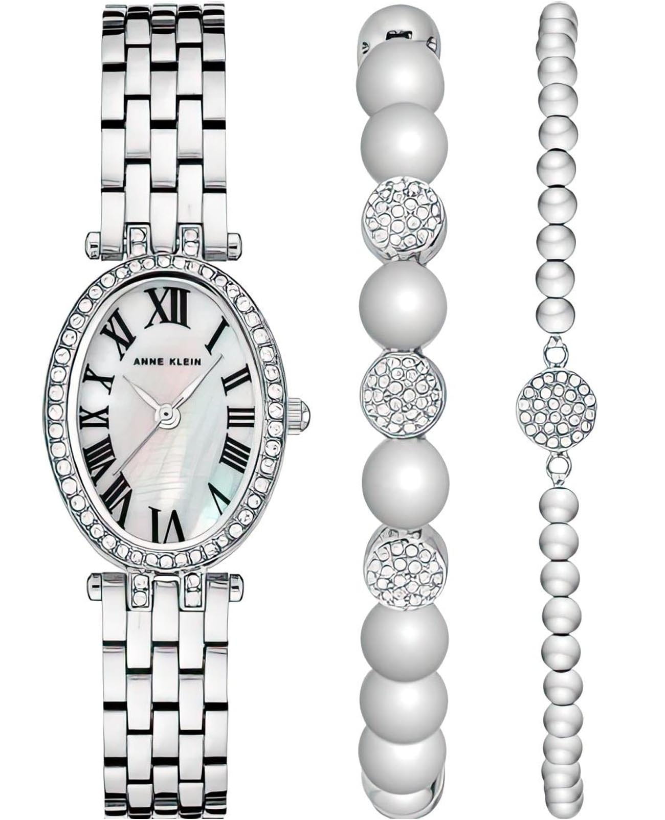 Женские американские наручные часы Anne Klein Box Set 3971SVST, кварцевый механизм с высокой точностью с минеральным стекломМинеральное стеклоМинеральное стекло представляет собой искусственно выращенный минерал кварца. Такое стекло отличается особой устойчивостью к повреждениям и царапинам. Уступает по некоторым качествам сапфировому стеклу.. Класс водозащиты:30 метров, позволит защитить корпус от случайных брызг или капель дождя. Корпус часов изготовлен из стали . Стальной браслет на ювелирной застёжке . В комплекте браслеты.