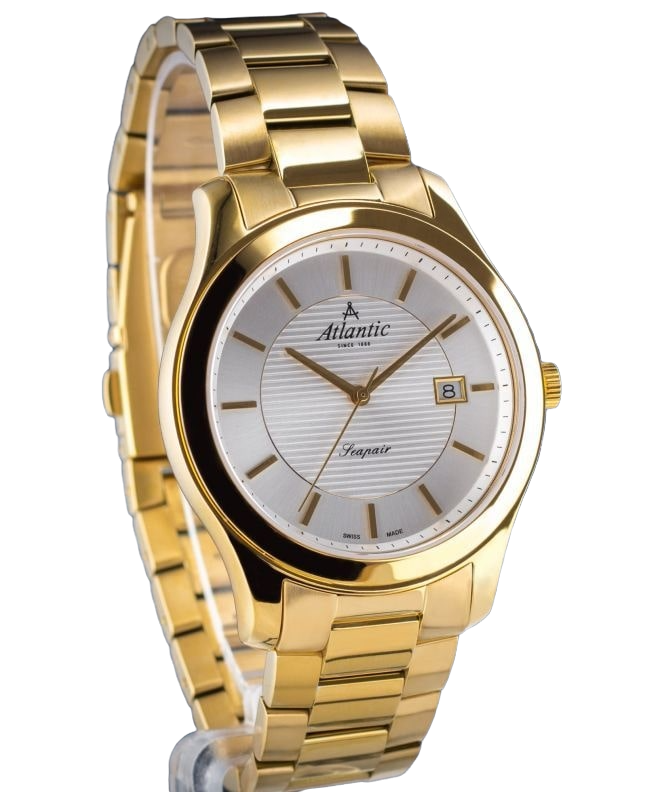 Мужские швейцарские часы c сапфировым стеклом Atlantic 60335.43.28G, кварцевый механизм с высокой точностью. Сапфировое стекло устойчивое к появлению царапин, обладающее высокой прозрачностью. Класс водозащиты: 30 метров, позволит защитить корпус от случайных брызг или капель дождя. Корпус часов изготовлен из стали, золотистого цвета.