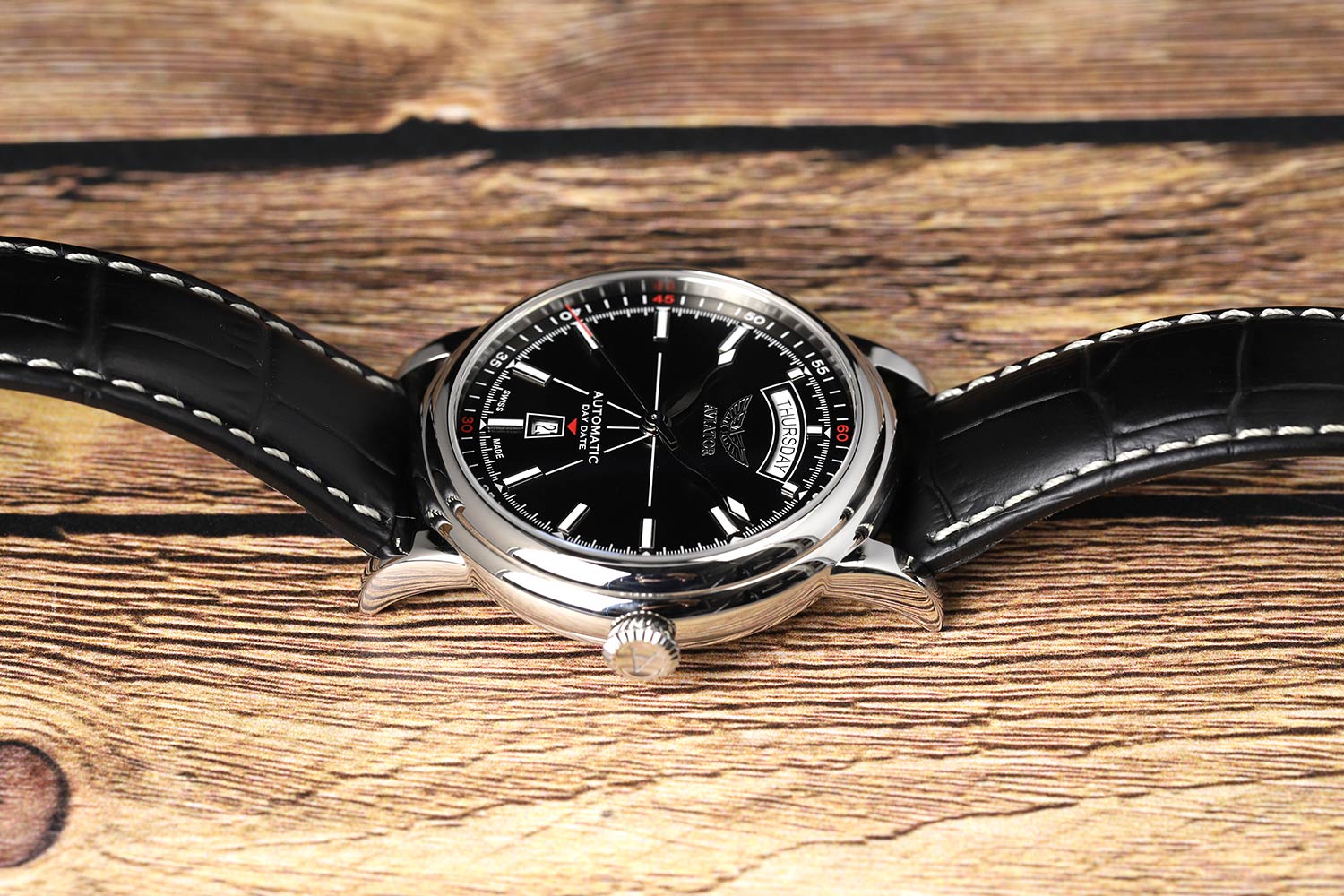Механизм — автоматический с функцией автоподзавода, ручной подзаводки, остановки секундной стрелки и функцией Day-Date. Запас хода составляет около 38 часов. Все функции настраиваются через заводную головку.