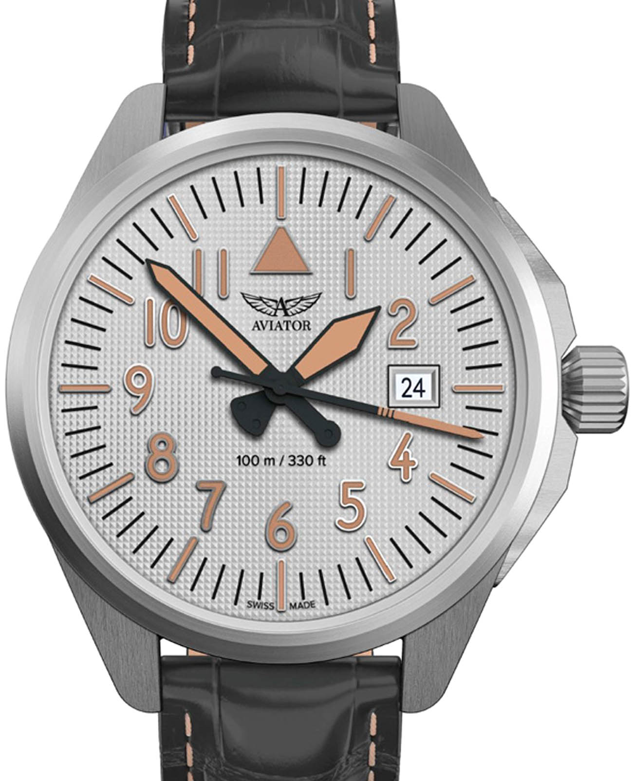 Aviator Airacobra V.3.39.0.336.4— швейцарские часы в классике авиадизайна, сочетающие безупречную читаемость и высокую надёжность. Корпус диаметром 42,8 мм выполнен из нержавеющей стали 316L. Матовый циферблат с крупными арабскими цифрами, широкими стрелками и контрастной шкалой минут обеспечивает точную и быструю считываемость информации — как и положено настоящим пилотским часам. У отметки «3 часа» — окошко даты. Часовые метки и стрелки покрыты люминесцентным покрытиемЛюминесцентное покрытиеПозволяет считывать показания времени в темноте. Производители наносят на стрелки, часовые индексы, безель или поверхность циферблата светонакопительный состав, дающий холодное свечение. Superluminova, позволяющим легко определять время даже в тёмное время суток. Поверхность защищена прочным сапфировым стекломСапфировое стеклоПрочный и надёжный материал из кристалла сапфира синтетического происхождения, характеризующийся особой твёрдостью и устойчивостью к царапинам и повреждениям. с антибликовым покрытием, устойчивым к царапинам. Сердце модели — швейцарский механизм Sellita SW 200-1, известный своей точностью и долговечностью. Водозащита 100 метров, позволит плавать, нырять и заниматься другими водными видами спорта. Завинчивающаяся головка и задняя крышка обеспечивают уверенную ударопрочностьУдаропрочный корпусМеханизм заключён в корпус, выполненный из современных материалов, устойчивых к ударам, механическим повреждениям и падению с высоты: инновационный пластик, карбон, нержавеющая сталь, титан. и надёжную защиту от влаги и пыли. В механизме 26 камней, запас хода до 38 часов. Модель дополнена кожаным ремешком с выразительной текстурой и классическим стилем, закреплённым с помощью стандартной застежки — для максимального комфорта и лёгкости в повседневном использовании. Aviator — это образец лётной точности, инженерной чёткости и сдержанной роскоши, идеально подходящий для тех, кто ценит функциональность и уверенность в каждом элементе.