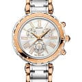Женские часы Balmain Balmainia B5638.33.82 c хронографомХронографФункция позволяет измерять отрезки времени с особой точностью: часы, минуты, секунды. Верным признаком хронографа является наличие на циферблате 3 дополнительных окошек-счётчиков. кварцевый механизм с высокой точностью. Сапфировое стеклоСапфировое стеклоПрочный и надёжный материал из кристалла сапфира синтетического происхождения, характеризующийся особой твёрдостью и устойчивостью к царапинам и повреждениям. устойчивое к появлению царапин, обладающее высокой прозрачностью. Корпус изготовлен из нержавеющей стали. Класс водозащиты: 50 метров, позволит защитить корпус от случайных брызг или капель дождя. Стальной браслет с частичным PVD-покрытиемPVDУльтратонкое покрытие наносится в технике вакуумного напыления, сочетает в себе нитрид титана особой прочности со слоем золота или оксида хрома. Несёт в себе декоративную или защитную функцию.. на застёжке «бабочка» с кнопкамиЗастёжка "бабочка"Такой вид застёжки дополняется предохранителями, помогающими избежать случайного раскрытия браслета. Обладают изящным исполнением. . БезельБезельВнешний ободок, закрепляющий стекло. В спортивных часах так называется поворотное кольцо с делениями на циферблате, выполняет роль таймера – замеряет отрезки времени на шкале. Неподвижный безель – элемент декора. Однонаправленно вращающийся безель на дайверских часах позволяет фиксировать моменты погружения и выныривания на поверхность. с PVD-покрытиемPVDУльтратонкое покрытие наносится в технике вакуумного напыления, сочетает в себе нитрид титана особой прочности со слоем золота или оксида хрома. Несёт в себе декоративную или защитную функцию.. Календарь в позиции 6 часов.