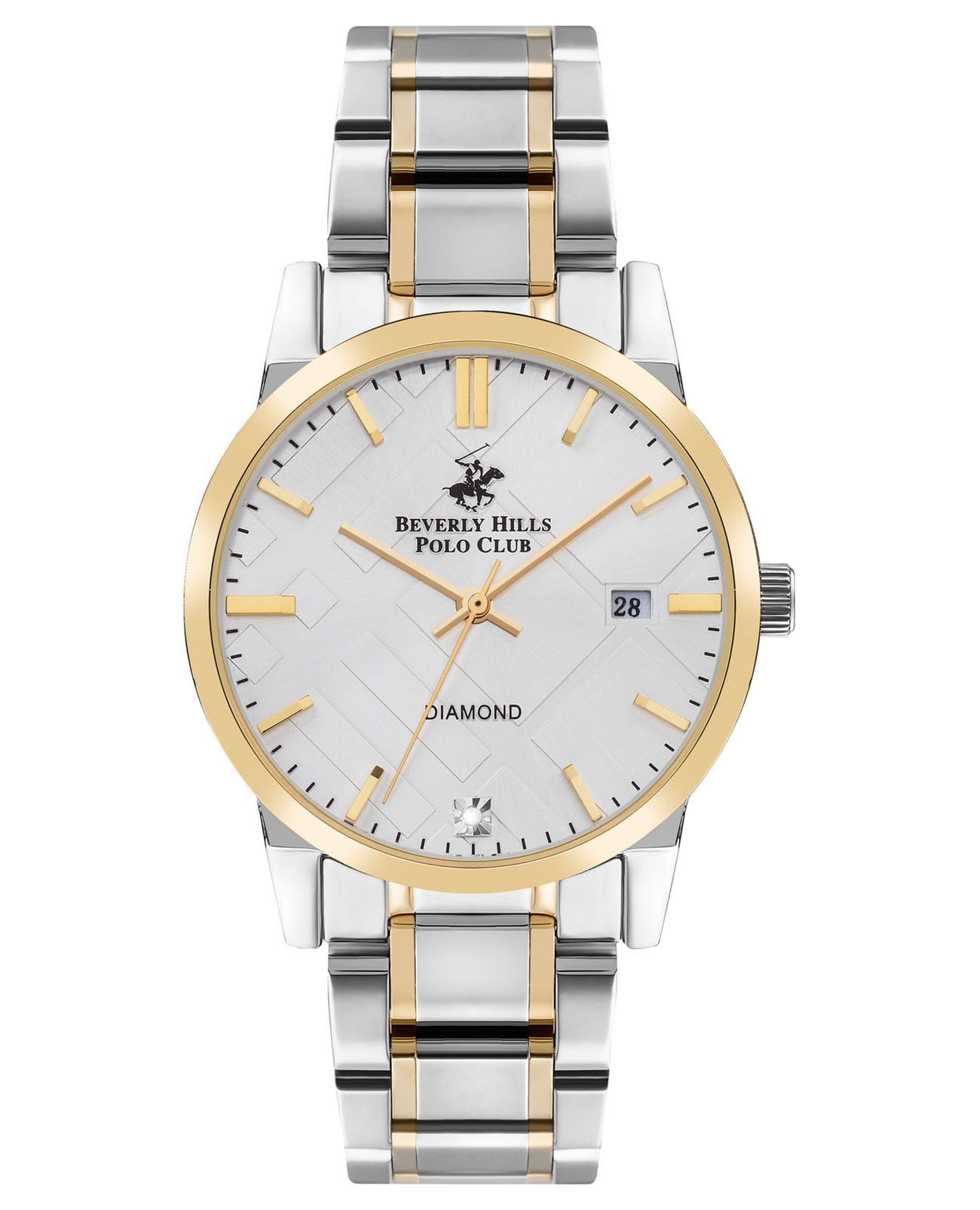 Американские женские часы с минеральным стекломМинеральное стеклоМинеральное стекло представляет собой искусственно выращенный минерал кварца. Такое стекло отличается особой устойчивостью к повреждениям и царапинам. Уступает по некоторым качествам сапфировому стеклу. Beverly Hills Polo Club BP3398C.230, кварцевый механизм с высокой точностью. Корпус часов изготовлен из нержавеющей стали. Неподвижный безельБезельВнешний ободок, закрепляющий стекло. В спортивных часах так называется поворотное кольцо с делениями на циферблате, выполняет роль таймера – замеряет отрезки времени на шкале. Неподвижный безель – элемент декора. Однонаправленно вращающийся безель на дайверских часах позволяет фиксировать моменты погружения и выныривания на поверхность. из нержавеющей стали с IP-покрытиемIP-покрытиеМетод ионного напыления. Демонстрирует повышенную устойчивость к истиранию, окислению и химическим веществам. Под воздействием высокого давления и температуры около 1500°C молекулы металла надёжно соединяются с частицами корпуса часов.. Циферблат украшен бриллиантом. Окошко даты в положении 3 часов. Класс водозащиты: 50 метров, позволит защитить корпус от случайных брызг или капель дождя. Стальной браслет с частичным IP-покрытиемIP-покрытиеМетод ионного напыления. Демонстрирует повышенную устойчивость к истиранию, окислению и химическим веществам. Под воздействием высокого давления и температуры около 1500°C молекулы металла надёжно соединяются с частицами корпуса часов. на раскладной застёжкеРаскладная застёжкаТакой тип застёжки используется только на браслетах из металла. Она никогда не раскрывается полностью, происходит разделение на 2 и более частей. Раскладывающая застёжка снизит вероятность потери часов к минимуму..