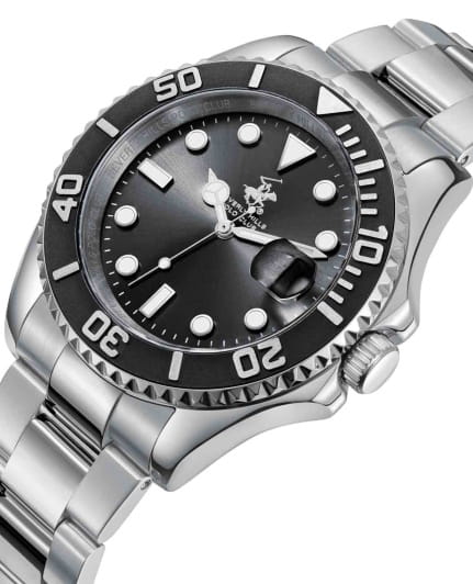 Beverly Hills Polo Club BP3791X.350 – стильные мужские часы, сочетающие современный дизайн и надёжность. Корпус диаметром 40.5 мм выполнен из суперметалла, обеспечивающей долговечность и устойчивость к коррозии. Поверхность циферблата защищена минеральным стекломМинеральное стеклоМинеральное стекло представляет собой искусственно выращенный минерал кварца. Такое стекло отличается особой устойчивостью к повреждениям и царапинам. Уступает по некоторым качествам сапфировому стеклу. с сапфировым покрытием, устойчивым к царапинам. Модель оснащена кварцевым механизмом с высокой точностью. Окошко даты находится в положении 3 часа. БезельБезельВнешний ободок, закрепляющий стекло. В спортивных часах так называется поворотное кольцо с делениями на циферблате, выполняет роль таймера – замеряет отрезки времени на шкале. Неподвижный безель – элемент декора. Однонаправленно вращающийся безель на дайверских часах позволяет фиксировать моменты погружения и выныривания на поверхность. с IP-покрытиемIP-покрытиеМетод ионного напыления. Демонстрирует повышенную устойчивость к истиранию, окислению и химическим веществам. Под воздействием высокого давления и температуры около 1500°C молекулы металла надёжно соединяются с частицами корпуса часов. черного цвета. Стрелки и метки с люминесцентным покрытиемЛюминесцентное покрытиеПозволяет считывать показания времени в темноте. Производители наносят на стрелки, часовые индексы, безель или поверхность циферблата светонакопительный состав, дающий холодное свечение.. Стальной браслет на раскладной застёжкеРаскладная застёжкаТакой тип застёжки используется только на браслетах из металла. Она никогда не раскрывается полностью, происходит разделение на 2 и более частей. Раскладывающая застёжка снизит вероятность потери часов к минимуму. обеспечивает комфортное ношение и надёжную фиксацию на запястье. Водозащита до 50 метров позволит защитить корпус от случайных брызг или капель дождя.
