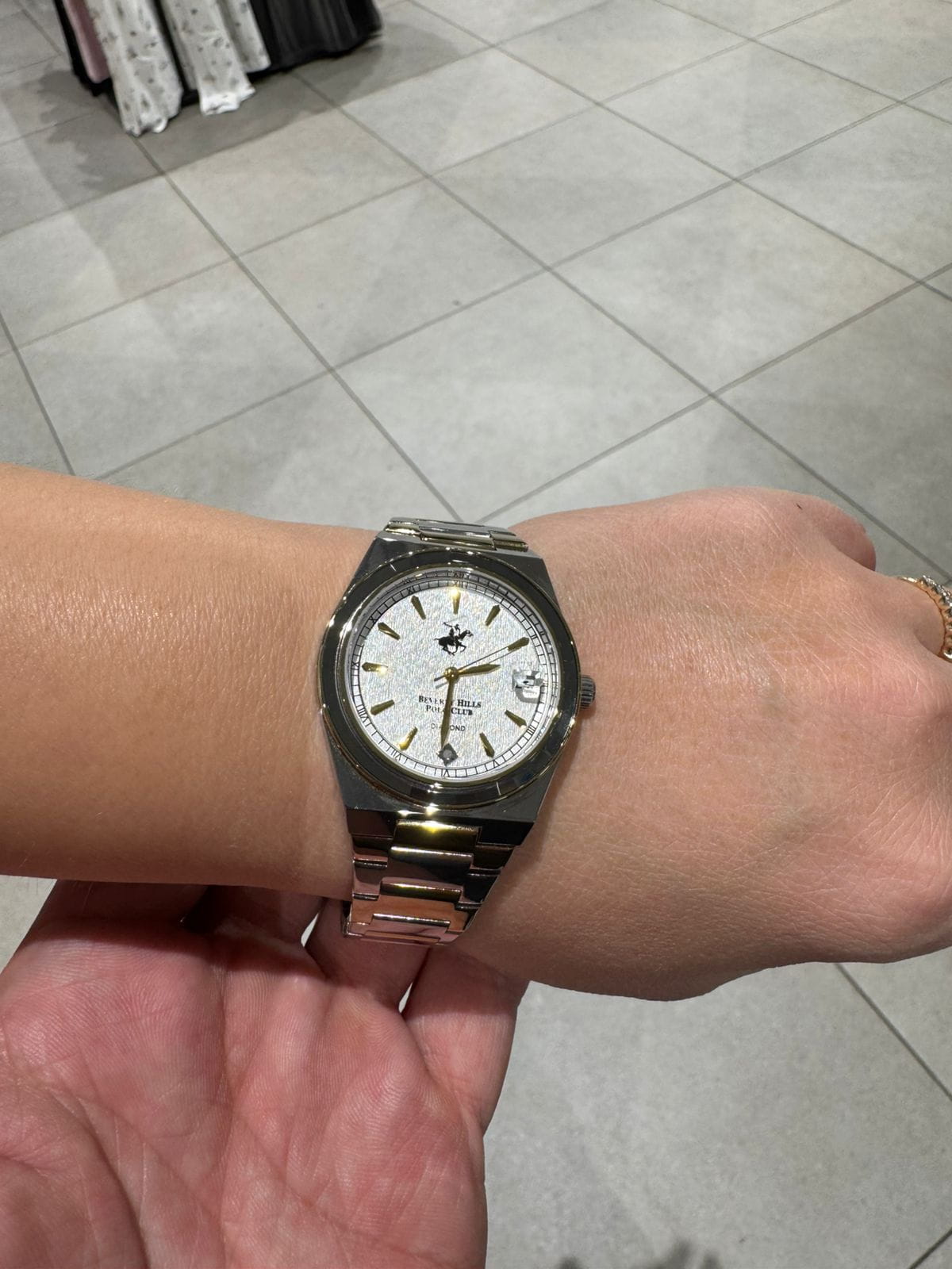 Женские наручные часы Beverly Hills Polo Club BP3562C.230 с надёжным кварцевым механизмом. Корпус и браслет часов изговлен из нержавеющей стали. Минеральное стеклоМинеральное стеклоМинеральное стекло представляет собой искусственно выращенный минерал кварца. Такое стекло отличается особой устойчивостью к повреждениям и царапинам. Уступает по некоторым качествам сапфировому стеклу. устойчивое к мелким механическим повреждениям. Стальной браслет с частичным IP-покрытиемIP-покрытиеМетод ионного напыления. Демонстрирует повышенную устойчивость к истиранию, окислению и химическим веществам. Под воздействием высокого давления и температуры около 1500°C молекулы металла надёжно соединяются с частицами корпуса часов. на застёжке-бабочке. Циферблат украшен синтетическим бриллиантом. Класс водозащиты: 30 метров, позволит защитить корпус от случайных брызг или капель дождя. Окошко даты находится в положении 3 часа.