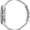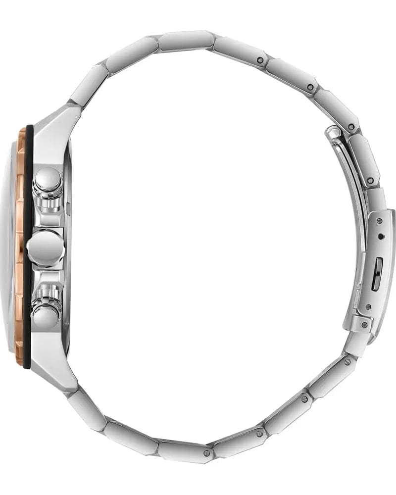 Модель оснащена кварцевым механизмом, который обеспечивает точное измерение времени. Металлический браслет серебристого цвета на раскладной застёжкеРаскладная застёжкаТакой тип застёжки используется только на браслетах из металла. Она никогда не раскрывается полностью, происходит разделение на 2 и более частей. Раскладывающая застёжка снизит вероятность потери часов к минимуму. обеспечивает комфортное ношение и надёжную фиксацию.