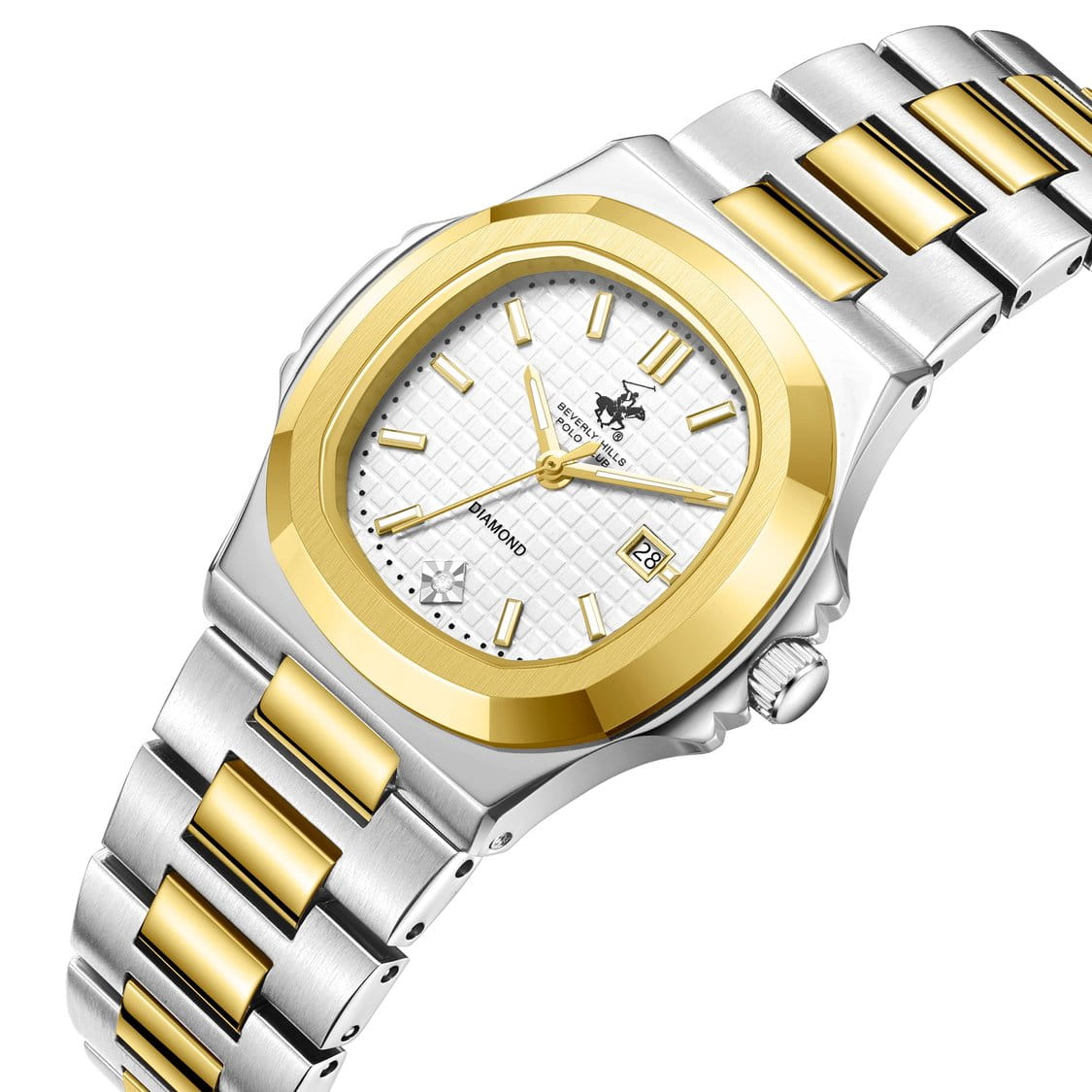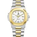 Американские женские часы Beverly Hills Polo Club BP3780X.230 - это стильный женский аксессуар, который сочетает элегантный дизайн и практичность. Корпус выполнен из нержавеющей стали серебристого цвета, диаметром 33,5 мм, что обеспечивает долговечность и утончённый внешний вид. Надежное минеральное стеклоМинеральное стеклоМинеральное стекло представляет собой искусственно выращенный минерал кварца. Такое стекло отличается особой устойчивостью к повреждениям и царапинам. Уступает по некоторым качествам сапфировому стеклу. с сапфировым покрытием защищает циферблат от царапин и обеспечивает долговечность. Метки в виде штрихов, в позиции "6 часов" инкрустирован синтетический бриллиант. Неподвижный безельБезельВнешний ободок, закрепляющий стекло. В спортивных часах так называется поворотное кольцо с делениями на циферблате, выполняет роль таймера – замеряет отрезки времени на шкале. Неподвижный безель – элемент декора. Однонаправленно вращающийся безель на дайверских часах позволяет фиксировать моменты погружения и выныривания на поверхность. с IP-покрытиемIP-покрытиеМетод ионного напыления. Демонстрирует повышенную устойчивость к истиранию, окислению и химическим веществам. Под воздействием высокого давления и температуры около 1500°C молекулы металла надёжно соединяются с частицами корпуса часов. золотистого цвета. Модель оснащена кварцевым механизмом, обеспечивающим высокую точность хода. Стальной браслет на застёжке-бабочке с кнопкамиЗастёжка "бабочка"Такой вид застёжки дополняется предохранителями, помогающими избежать случайного раскрытия браслета. Обладают изящным исполнением. обеспечивает комфортное ношение. Стрелки и метки оснащены люминесцентным покрытиемЛюминесцентное покрытиеПозволяет считывать показания времени в темноте. Производители наносят на стрелки, часовые индексы, безель или поверхность циферблата светонакопительный состав, дающий холодное свечение., обеспечивающим отличную видимость даже при слабом освещении. Окошко даты находится в положении 3 часа. Водозащита 30 метров позволит защитить корпус от случайных брызг или капель дождя. Эта модель – отличный выбор для тех, кто ищет сочетание стиля, качества и функциональности. Часы станут не только полезным аксессуаром, но и выразительным элементом вашего имиджа.