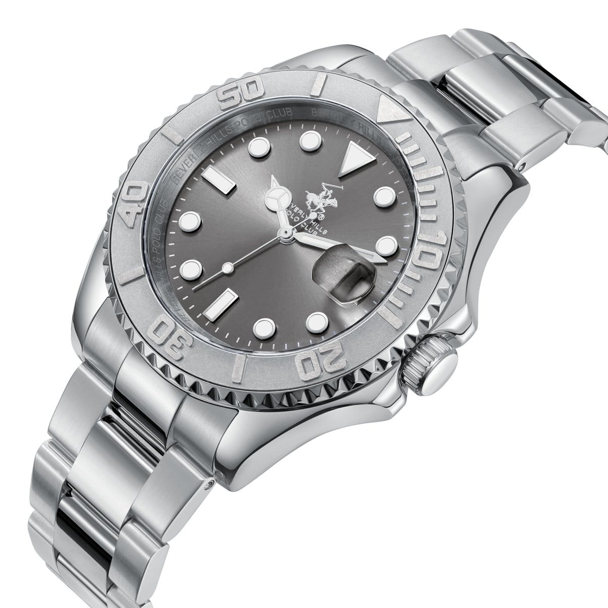Американские мужские часы Beverly Hills Polo Club BP3797X.360 - это стильный мужской аксессуар, который сочетает элегантный дизайн и практичность. Корпус выполнен из нержавеющей стали серебристого цвета, диаметром 40,5 мм, что обеспечивает долговечность и утончённый внешний вид. Надежное минеральное стеклоМинеральное стеклоМинеральное стекло представляет собой искусственно выращенный минерал кварца. Такое стекло отличается особой устойчивостью к повреждениям и царапинам. Уступает по некоторым качествам сапфировому стеклу. с сапфировым покрытием защищает циферблат от царапин и обеспечивает долговечность. Поворотный безельБезельВнешний ободок, закрепляющий стекло. В спортивных часах так называется поворотное кольцо с делениями на циферблате, выполняет роль таймера – замеряет отрезки времени на шкале. Неподвижный безель – элемент декора. Однонаправленно вращающийся безель на дайверских часах позволяет фиксировать моменты погружения и выныривания на поверхность.. Модель оснащена кварцевым механизмом, обеспечивающим высокую точность хода. Стальной браслет на раскладной застёжкеРаскладная застёжкаТакой тип застёжки используется только на браслетах из металла. Она никогда не раскрывается полностью, происходит разделение на 2 и более частей. Раскладывающая застёжка снизит вероятность потери часов к минимуму. обеспечивает комфортное ношение. Окошко даты находится в положении 3 часа. Стрелки и метки с люминесцентным покрытиемЛюминесцентное покрытиеПозволяет считывать показания времени в темноте. Производители наносят на стрелки, часовые индексы, безель или поверхность циферблата светонакопительный состав, дающий холодное свечение. позволяют легко считывать время даже в условиях недостаточного освещения. Водозащита 50 метров позволит защитить корпус от случайных брызг или капель дождя. Эта модель – отличный выбор для тех, кто ищет сочетание стиля, качества и функциональности. Часы станут не только полезным аксессуаром, но и выразительным элементом вашего имиджа.