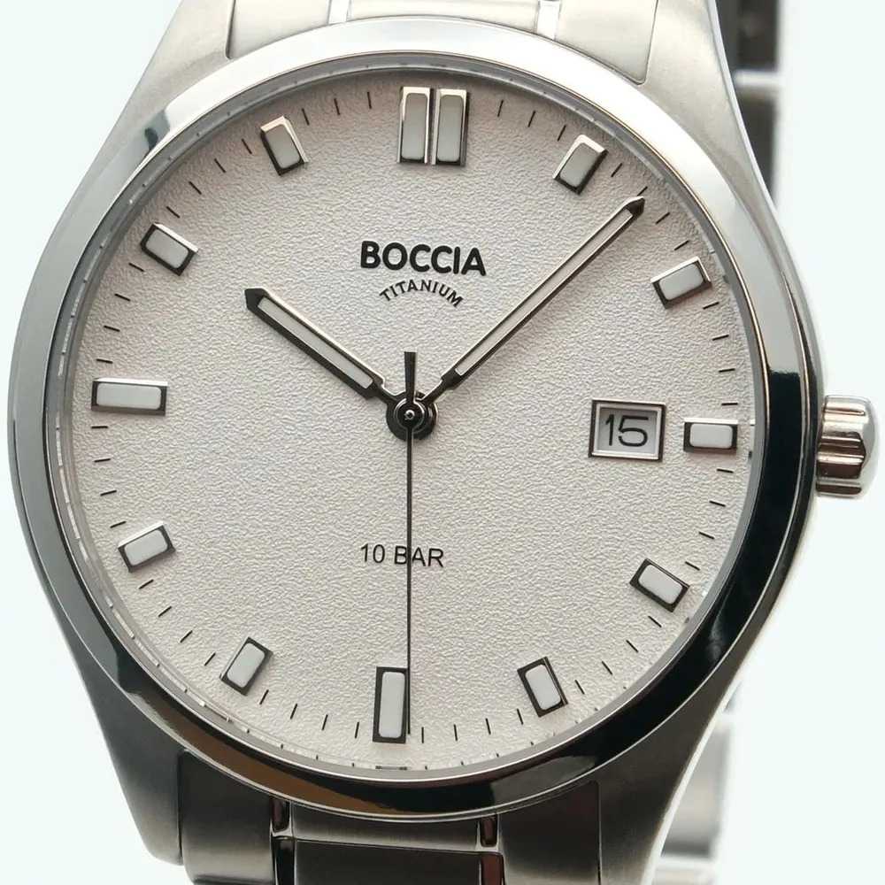Часы Boccia 3669-03 представляют собой идеальное сочетание стиля и функциональности для современного мужчины. Оснащенные надежным кварцевым механизмом Miyota GR12, они обеспечивают высокую точность хода. На светло-серебристом циферблате с метками времени расположены центральные часовая, минутная и секундная стрелки, а также апертура даты в положении 3 часов, что делает использование этих часов еще более удобным. Корпус часов имеет круглый дизайн и выполнен из суперлегкого титана, что обеспечивает комфорт и легкость при ношении. Диаметр корпуса составляет 39 мм, что делает часы универсальными и подходящими для любого запястья. Стрелки часов покрыты люминесцентным покрытиемЛюминесцентное покрытиеПозволяет считывать показания времени в темноте. Производители наносят на стрелки, часовые индексы, безель или поверхность циферблата светонакопительный состав, дающий холодное свечение., которое мягко светится в темноте, освещая путь даже в самых загадочных сумерках. Титановый браслет с раскладной застёжкойРаскладная застёжкаТакой тип застёжки используется только на браслетах из металла. Она никогда не раскрывается полностью, происходит разделение на 2 и более частей. Раскладывающая застёжка снизит вероятность потери часов к минимуму. добавляет элегантности и обеспечивает надежную фиксацию на руке. Часы защищены прочным минеральным стекломМинеральное стеклоМинеральное стекло представляет собой искусственно выращенный минерал кварца. Такое стекло отличается особой устойчивостью к повреждениям и царапинам. Уступает по некоторым качествам сапфировому стеклу., устойчивым к мелким механическим повреждениям, что сохраняет их безупречный вид при повседневном использовании. Водостойкость модели составляет WR 100, что позволяет использовать их при плавании без погружения, не беспокоясь о сохранности механизма.