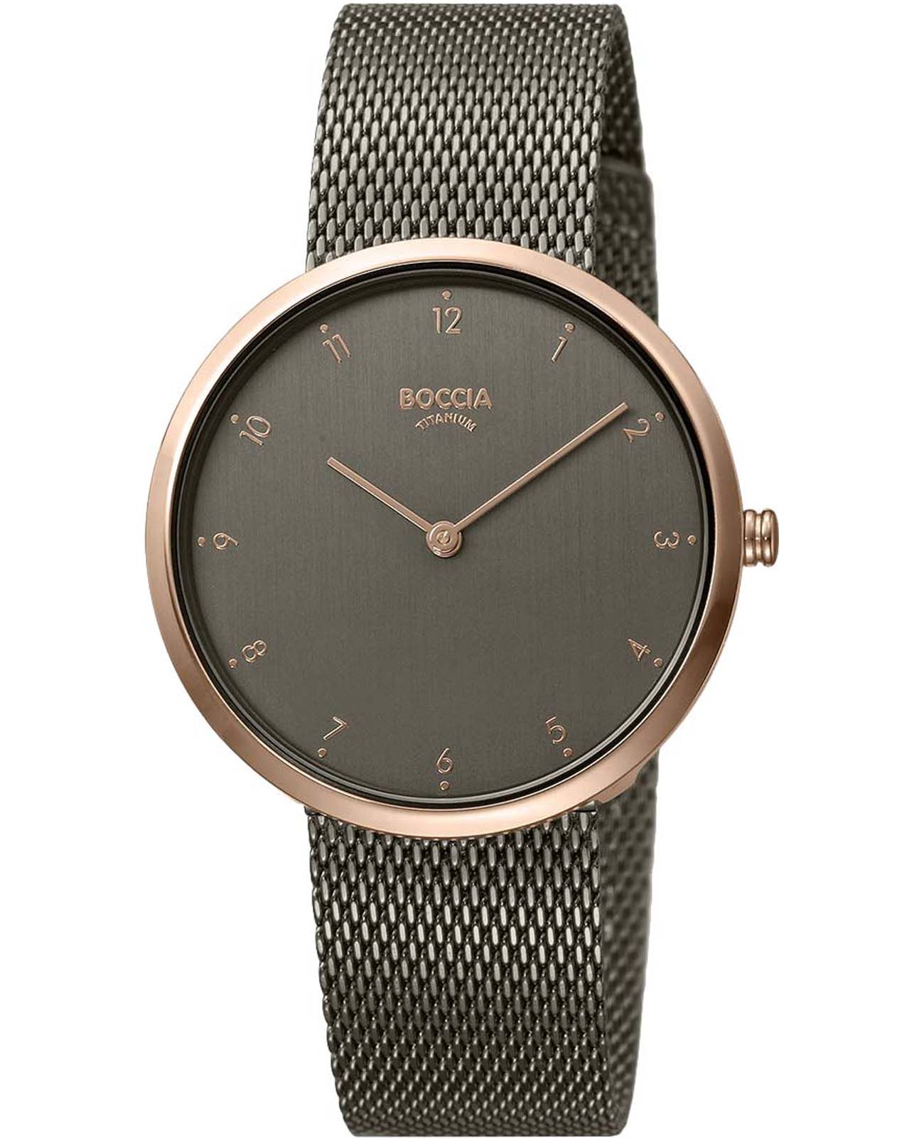 Женские наручные часы Boccia Titanium 3309-10 с надёжным кварцевым механизмом. Корпус часов изготовлен из титана с PVD-покрытиемPVDУльтратонкое покрытие наносится в технике вакуумного напыления, сочетает в себе нитрид титана особой прочности со слоем золота или оксида хрома. Несёт в себе декоративную или защитную функцию.. Минеральное стеклоМинеральное стеклоМинеральное стекло представляет собой искусственно выращенный минерал кварца. Такое стекло отличается особой устойчивостью к повреждениям и царапинам. Уступает по некоторым качествам сапфировому стеклу. устойчивое к мелким механическим повреждениям. Класс водозащиты: 30 метров, позволит защитить корпус от случайных брызг или капель дождя. Стальной браслет миланского плетения на раскладном замкеРаскладной замокДанный вариант застежки используется только на часах с металлическим браслетом. Отличительная особенность такого крепления в том, что длина браслета становится универсальной и вы можете самостоятельно отрегулировать нужный вам размер – застежка просто двигается по браслету часов.