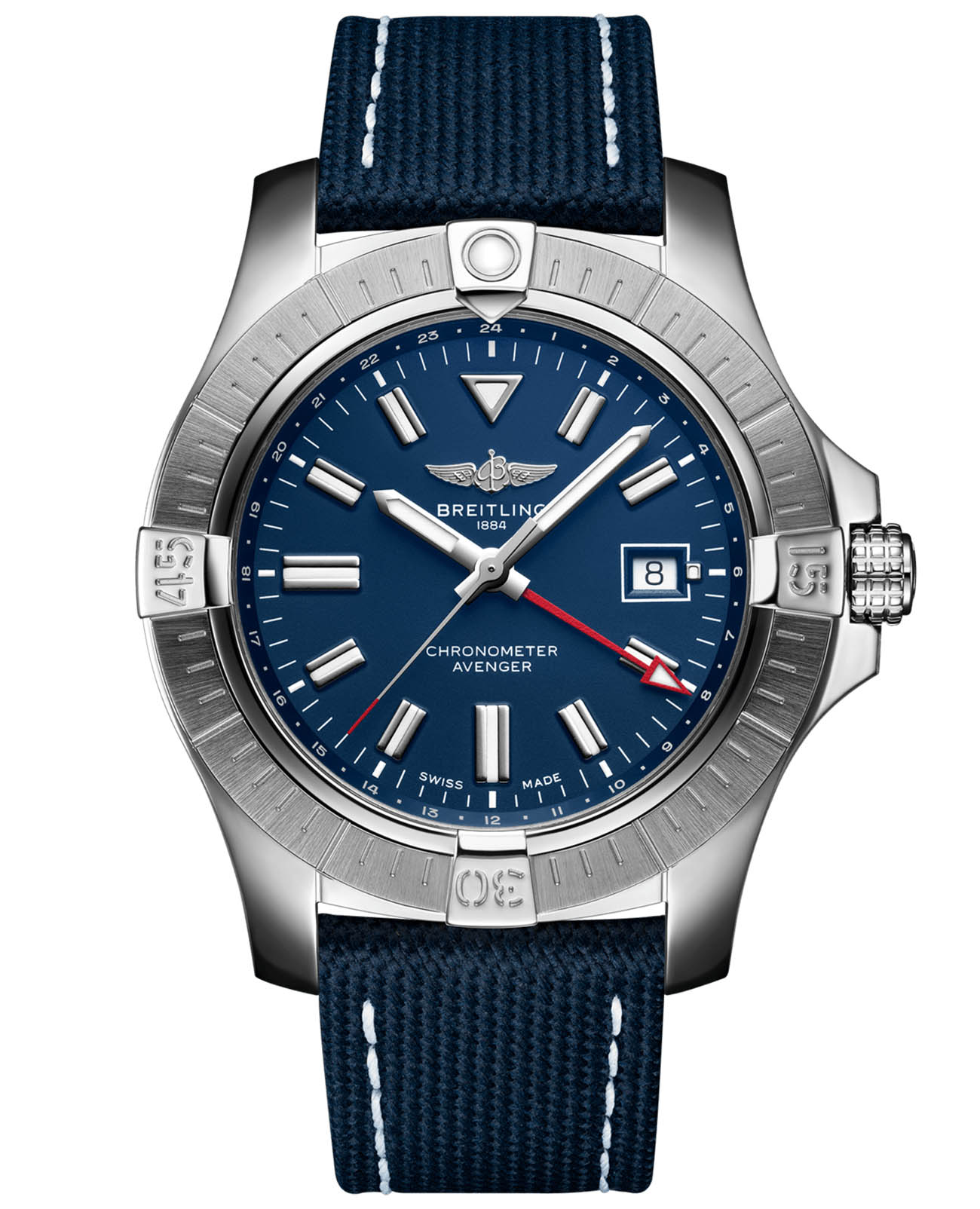 Мужские швейцарские часы Breitling Avenger Automatic GMT 45 A32395101C1X2, механический механизм (автоматический калибр) Breitling 32 с высокой точностью. Выпуклое сапфировое стекло устойчивое к появлению царапин, обладающее высокой прозрачностью и антибликовым покрытием с обеих сторон.