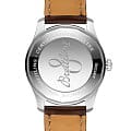 Класс водозащиты: 100 метров, позволит плавать, нырять и заниматься другими водными видами спорта. Выпуклое сапфировое стекло с антибликовым покрытием с обoеих сторон. Корпус часов серебристого цвета, изготовлен из нержавеющей стали. Ремешок из телячьей кожи коричневого цвета со складной клипсой из нержавеющей стали.