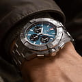 Мужские наручные часы c хронографомХронографФункция позволяет измерять отрезки времени с особой точностью: часы, минуты, секунды. Верным признаком хронографа является наличие на циферблате 3 дополнительных окошек-счётчиков. Breitling Avenger B01 Chronograph 44 AB0147101C1A1 с надёжным автоматическим механизмом. Корпус часов изготовлен из нержавеющей стали. Сапфировое стеклоСапфировое стеклоПрочный и надёжный материал из кристалла сапфира синтетического происхождения, характеризующийся особой твёрдостью и устойчивостью к царапинам и повреждениям. с антибликовым покрытием, устойчивое к мелким механическим повреждениям. Стальной браслет с раскладной застёжкойРаскладная застёжкаТакой тип застёжки используется только на браслетах из металла. Она никогда не раскрывается полностью, происходит разделение на 2 и более частей. Раскладывающая застёжка снизит вероятность потери часов к минимуму.. Стрелки и метки с люминесцентным покрытиемЛюминесцентное покрытиеПозволяет считывать показания времени в темноте. Производители наносят на стрелки, часовые индексы, безель или поверхность циферблата светонакопительный состав, дающий холодное свечение.. Однонаправленный безельБезельВнешний ободок, закрепляющий стекло. В спортивных часах так называется поворотное кольцо с делениями на циферблате, выполняет роль таймера – замеряет отрезки времени на шкале. Неподвижный безель – элемент декора. Однонаправленно вращающийся безель на дайверских часах позволяет фиксировать моменты погружения и выныривания на поверхность.. Класс водозащиты: 300 метров, позволит плавать, нырять и заниматься другими водными видами спорта.