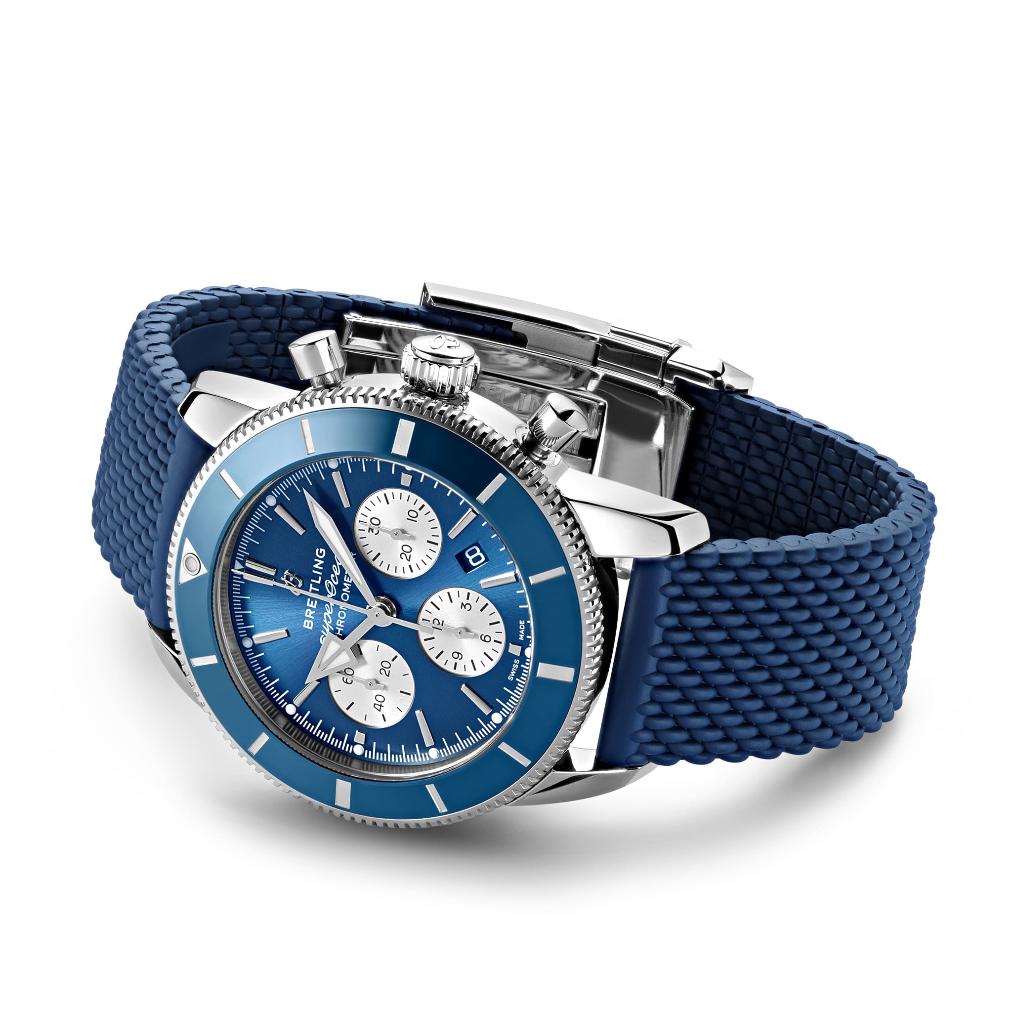 Корпус часов Superocean Heritage B01 Chronograph 44 может быть выполнен из различных материалов, в том числе нержавеющей стали и 18-каратного розового золота.