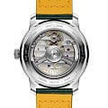 Breitling Top Time B31 AB3113171L1X1 — стильная новинка 2025 года с характерной винтажной эстетикой и современным механизмом собственного производства. Корпус диаметром 38 мм выполнен из нержавеющей стали с полированной отделкой. Прозрачная задняя крышка позволяет наблюдать за работой механизма. Циферблат защищён выпуклым сапфировым стекломСапфировое стеклоПрочный и надёжный материал из кристалла сапфира синтетического происхождения, характеризующийся особой твёрдостью и устойчивостью к царапинам и повреждениям. с двухсторонним антибликовым покрытиемАнтибликовое покрытиеСлой оксида металла в 0,13-0,3 микрон, благодаря которому стекло часов не бликует и не отражает свет. Антибликовое покрытие уменьшает отражение света в 10 раз, обеспечивая отличную читаемость показателей циферблата.. Зелёный циферблат с контрастным внутренним кольцом и яркой оранжевой секундной стрелкой оформлен в узнаваемом стиле коллекции Top Time. Стрелки и часовые метки имеют люминесцентное покрытиеЛюминесцентное покрытиеПозволяет считывать показания времени в темноте. Производители наносят на стрелки, часовые индексы, безель или поверхность циферблата светонакопительный состав, дающий холодное свечение., обеспечивающее отличную читаемость. Внутри установлен автоматический калибр Breitling B31, отображающий часы, минуты, малую секунду и дату. Механизм обеспечивает запас хода до 78 часов и работает с частотой 28 800 полуколебаний в час. Часы укомплектованы перфорированным кожаным ремешком зелёного цвета с классической застёжкой-пряжкой. Водонепроницаемость 100 метров делает модель универсальной для повседневного использования. Top Time B31 AB3113171L1X1 — гармония винтажного дизайна и инновационного часового мастерства.