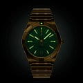 . Браслет на застёжке-бабочке с кнопкамиЗастёжка "бабочка"Такой вид застёжки дополняется предохранителями, помогающими избежать случайного раскрытия браслета. Обладают изящным исполнением. . Стрелки и метки с люминесцентным покрытиемЛюминесцентное покрытиеПозволяет считывать показания времени в темноте. Производители наносят на стрелки, часовые индексы, безель или поверхность циферблата светонакопительный состав, дающий холодное свечение.. Класс водозащиты: 100 метров, позволит плавать, нырять и заниматься другими водными видами спорта. Окошко даты находится в положении 6 часов.
