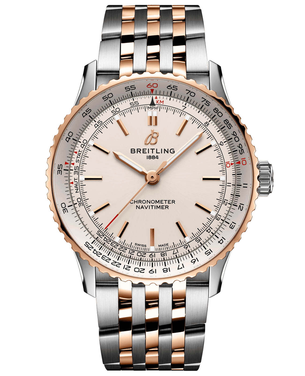 Самые универсальные часы Navitimer от Breitling — для путешествий. Navitimer - одни из самых узнаваемых часов, когда-либо созданных. Они входят в списки величайших часов всех времен по версии коллекционеров. Часы, которые появились в 1952 году как инструмент для пилотов, со временем стали значить нечто очень важное для каждого, кто брал их с собой в путешествие. Модели Navitimer Automatic и GMT 41 с автоподзаводом создают культовый внешний вид, исключая хронограф, но сохраняя сбалансированную композицию циферблата. Центральное расположение 24-часовой шкалы по Гринвичу и чистый циферблат автоматических часов выделяют сложную логарифмическую линейку, подчеркивая общую эстетику. Для придания коллекции более современного вида был добавлен безель с насечкой, а чередующиеся полированные и матовые элементы отделки создают динамичную игру света. Ремешки из кожи аллигатора и браслеты с бесшовной застежкой-бабочкой обеспечивают комфорт и удобство. Палитра включает в себя красочные циферблаты, выполненные из нержавеющей стали.