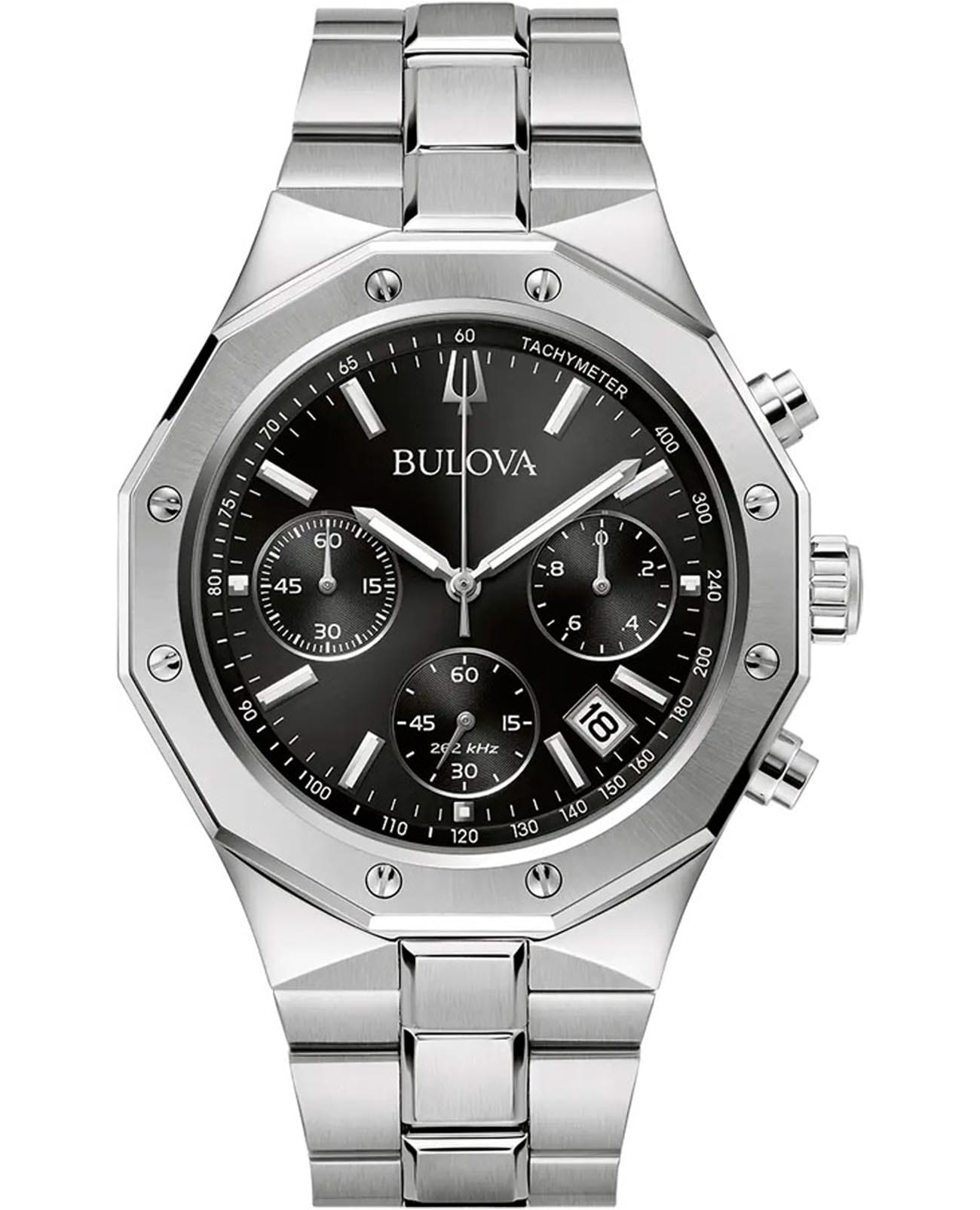 Мужские кварцевые часы-хронографХронографФункция позволяет измерять отрезки времени с особой точностью: часы, минуты, секунды. Верным признаком хронографа является наличие на циферблате 3 дополнительных окошек-счётчиков. Bulova Classic 96B410  – отражающий идеальное сочетание современного дизайна, надёжности и функциональности. Элегантный облик станет превосходным завершением образа, наделив его индивидуальным характером. Корпус из нержавеющей стали, диаметром 44 мм идеально сбалансирован и элегантен. Минеральное стеклоМинеральное стеклоМинеральное стекло представляет собой искусственно выращенный минерал кварца. Такое стекло отличается особой устойчивостью к повреждениям и царапинам. Уступает по некоторым качествам сапфировому стеклу. защищает циферблат от царапин и устойчивое к мелким механическим повреждениям. Шкала тахиметраТахиметрРазмеченная шкала, располагается на ободке или безеле часов. Тахиметр позволяет рассчитать скорость на определённом участке пути, расстояние измеряется в километрах или милях. на циферблате. Стальной браслет на раскладной застёжкеРаскладная застёжкаТакой тип застёжки используется только на браслетах из металла. Она никогда не раскрывается полностью, происходит разделение на 2 и более частей. Раскладывающая застёжка снизит вероятность потери часов к минимуму. обеспечивает комфортное ношение. Стрелки и метки с люминесцентным покрытиемЛюминесцентное покрытиеПозволяет считывать показания времени в темноте. Производители наносят на стрелки, часовые индексы, безель или поверхность циферблата светонакопительный состав, дающий холодное свечение. позволяющие легко определять время даже в темноте. Водозащита 100 метров, позволит плавать, нырять и заниматься другими водными видами спорта. Окошко даты находится в положении между 4 и 5 часов. Эта модель – отличный выбор для тех, кто ищет сочетание стиля, качества и функциональности. Часы станут не только полезным аксессуаром, но и выразительным элементом вашего имиджа.