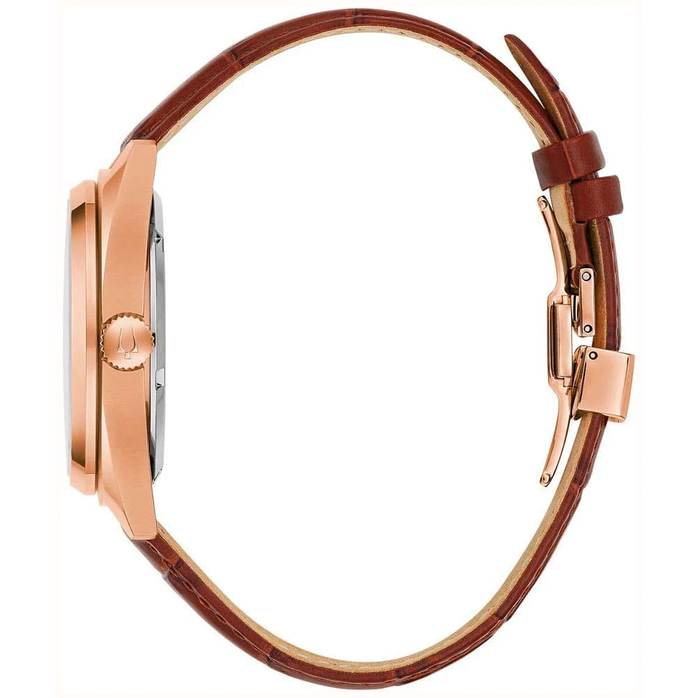 Мужские механические часы-скелетоны с автоподзаводом Bulova Surveyor 97A175 – отражающий идеальное сочетание современного дизайна, надёжности и функциональности. Элегантный облик станет превосходным завершением образа, наделив его индивидуальным характером. Корпус из нержавеющей стали с PVD-покрытиемPVDУльтратонкое покрытие наносится в технике вакуумного напыления, сочетает в себе нитрид титана особой прочности со слоем золота или оксида хрома. Несёт в себе декоративную или защитную функцию. цвета розового золота, диаметром 41 мм идеально сбалансирован и элегантен. Минеральное стеклоМинеральное стеклоМинеральное стекло представляет собой искусственно выращенный минерал кварца. Такое стекло отличается особой устойчивостью к повреждениям и царапинам. Уступает по некоторым качествам сапфировому стеклу. защищает циферблат от царапин и устойчивое к мелким механическим повреждениям. Кожаный ремешок на застёжке-бабочке с кнопкамиЗастёжка "бабочка"Такой вид застёжки дополняется предохранителями, помогающими избежать случайного раскрытия браслета. Обладают изящным исполнением. обеспечивает комфортное ношение. Стрелки с люминесцентным покрытиемЛюминесцентное покрытиеПозволяет считывать показания времени в темноте. Производители наносят на стрелки, часовые индексы, безель или поверхность циферблата светонакопительный состав, дающий холодное свечение.. Водозащита 30 метров позволит защитить корпус от случайных брызг или капель дождя. Эта модель – отличный выбор для тех, кто ищет сочетание стиля, качества и функциональности. Часы станут не только полезным аксессуаром, но и выразительным элементом вашего имиджа.