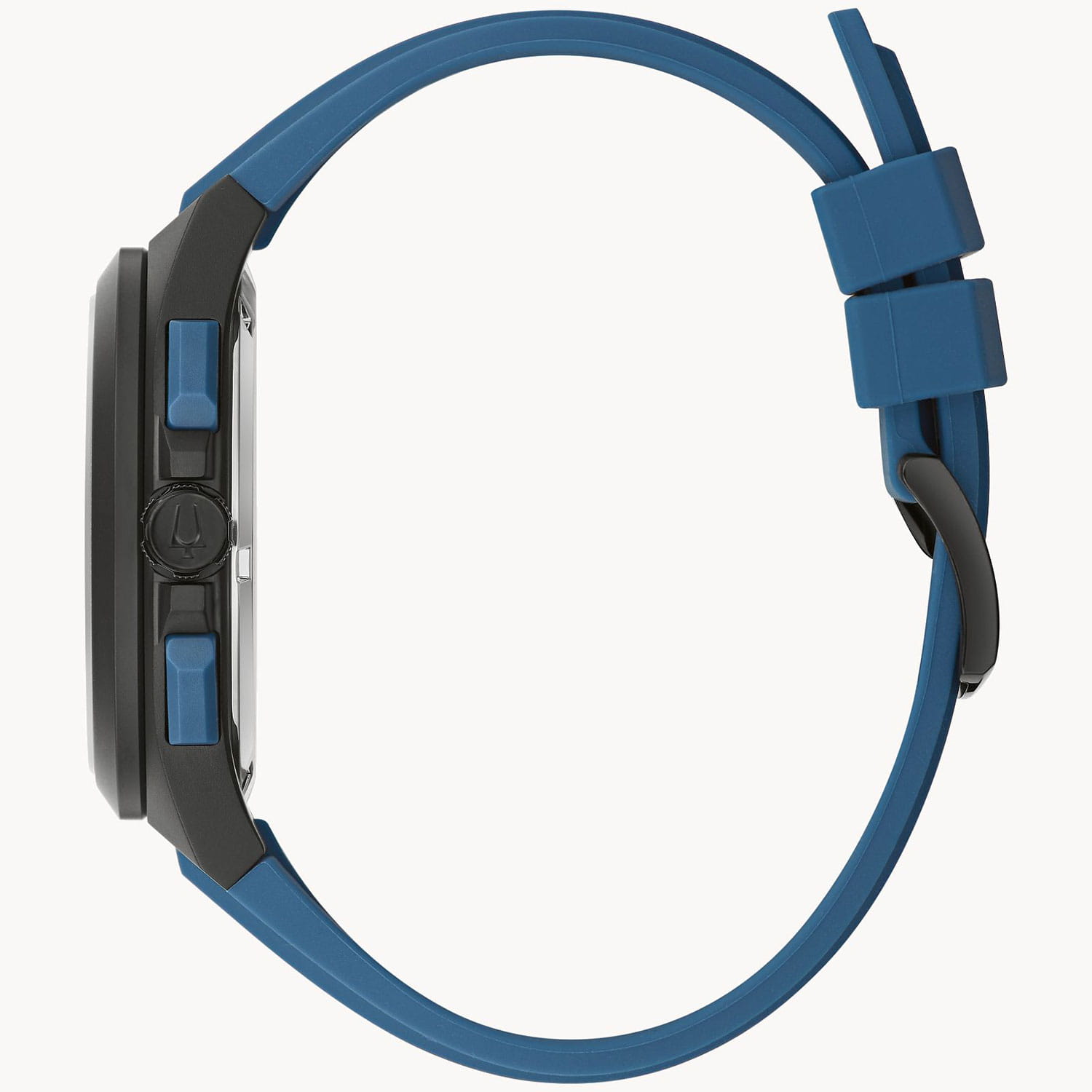 Мужские кварцевые часы-хронографХронографФункция позволяет измерять отрезки времени с особой точностью: часы, минуты, секунды. Верным признаком хронографа является наличие на циферблате 3 дополнительных окошек-счётчиков. Bulova Maquina 98B380 – отражающий идеальное сочетание современного дизайна, надёжности и функциональности. Элегантный облик станет превосходным завершением образа, наделив его индивидуальным характером. Корпус из нержавеющей стали с IP-покрытиемIP-покрытиеМетод ионного напыления. Демонстрирует повышенную устойчивость к истиранию, окислению и химическим веществам. Под воздействием высокого давления и температуры около 1500°C молекулы металла надёжно соединяются с частицами корпуса часов., диаметром 46 мм идеально сбалансирован и элегантен. Защиту циферблата обеспечивает прочное сапфировое стеклоСапфировое стеклоПрочный и надёжный материал из кристалла сапфира синтетического происхождения, характеризующийся особой твёрдостью и устойчивостью к царапинам и повреждениям. гарантирующее четкость показаний. Центральные часовая и минутная стрелки. Силиконовый ремешок со стандартной застежкой обеспечивает комфортное ношение.  Апертура даты в позиции 3 часов. Водозащита 100 метров позволит плавать, нырять и заниматься другими водными видами спорта. Стрелки и метки с люминесцентным покрытиемЛюминесцентное покрытиеПозволяет считывать показания времени в темноте. Производители наносят на стрелки, часовые индексы, безель или поверхность циферблата светонакопительный состав, дающий холодное свечение. позволяющие легко определять время даже в темноте. Эта модель – отличный выбор для тех, кто ищет сочетание стиля, качества и функциональности. Часы станут не только полезным аксессуаром, но и выразительным элементом вашего имиджа.