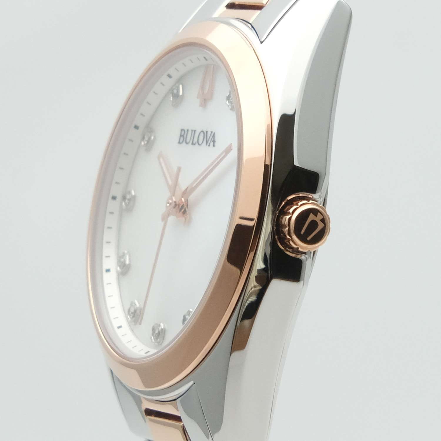 Женские кварцевые часы Bulova Surveyor 98P207 – отражающий идеальное сочетание современного дизайна, надёжности и функциональности. Элегантный облик станет превосходным завершением образа, наделив его индивидуальным характером. Корпус из нержавеющей стали серебристого цвета, диаметром 31 мм идеально сбалансирован и элегантен. Минеральное стеклоМинеральное стеклоМинеральное стекло представляет собой искусственно выращенный минерал кварца. Такое стекло отличается особой устойчивостью к повреждениям и царапинам. Уступает по некоторым качествам сапфировому стеклу. защищает циферблат от царапин и устойчивое к мелким механическим повреждениям. Неподвижный безельБезельВнешний ободок, закрепляющий стекло. В спортивных часах так называется поворотное кольцо с делениями на циферблате, выполняет роль таймера – замеряет отрезки времени на шкале. Неподвижный безель – элемент декора. Однонаправленно вращающийся безель на дайверских часах позволяет фиксировать моменты погружения и выныривания на поверхность. с IP-покрытиемIP-покрытиеМетод ионного напыления. Демонстрирует повышенную устойчивость к истиранию, окислению и химическим веществам. Под воздействием высокого давления и температуры около 1500°C молекулы металла надёжно соединяются с частицами корпуса часов. цвета розового золота. Циферблат украшен бриллиантами. Стальной браслет с частичным IP-покрытиемIP-покрытиеМетод ионного напыления. Демонстрирует повышенную устойчивость к истиранию, окислению и химическим веществам. Под воздействием высокого давления и температуры около 1500°C молекулы металла надёжно соединяются с частицами корпуса часов. на застёжке-бабочке с кнопкамиЗастёжка "бабочка"Такой вид застёжки дополняется предохранителями, помогающими избежать случайного раскрытия браслета. Обладают изящным исполнением. обеспечивает комфортное ношение. Стрелки с люминесцентным покрытиемЛюминесцентное покрытиеПозволяет считывать показания времени в темноте. Производители наносят на стрелки, часовые индексы, безель или поверхность циферблата светонакопительный состав, дающий холодное свечение.. Водозащита 30 метров позволит защитить корпус от случайных брызг или капель дождя. Эта модель – отличный выбор для тех, кто ищет сочетание стиля, качества и функциональности. Часы станут не только полезным аксессуаром, но и выразительным элементом вашего имиджа.