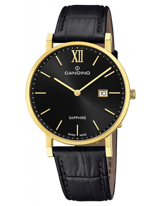 Швейцарские мужские наручные часы Candino Classic C4726/3, кварцевый механизм с высокой точностью. Сапфировое стекло устойчивое к появлению царапин, обладающее высокой прозрачностью. Класс водозащиты: 50 метров, позволит защитить корпус от случайных брызг или капель дождя. Корпус часов изготовлен из стали, золотистого цвета.