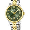 Женские наручные часы Candino Lady Elegance Date C4767/4 с надёжным кварцевым механизмом. Корпус и браслет часов изготовлены из нержавеющей стали. Сапфировое стеклоСапфировое стеклоПрочный и надёжный материал из кристалла сапфира синтетического происхождения, характеризующийся особой твёрдостью и устойчивостью к царапинам и повреждениям. повышенной прозрачности, устойчивое к мелким механическим повреждениям. Стальной браслет с частичным PVD-покрытиемPVDУльтратонкое покрытие наносится в технике вакуумного напыления, сочетает в себе нитрид титана особой прочности со слоем золота или оксида хрома. Несёт в себе декоративную или защитную функцию. на раскладной застёжкеРаскладная застёжкаТакой тип застёжки используется только на браслетах из металла. Она никогда не раскрывается полностью, происходит разделение на 2 и более частей. Раскладывающая застёжка снизит вероятность потери часов к минимуму.. Стрелки с люминесцентным покрытиемЛюминесцентное покрытиеПозволяет считывать показания времени в темноте. Производители наносят на стрелки, часовые индексы, безель или поверхность циферблата светонакопительный состав, дающий холодное свечение.. Циферблат инкрустирован кристаллами. Класс водозащиты: 50 метров, позволит защитить корпус от случайных брызг или капель дождя. Окошко даты находится в положении 6 часов.