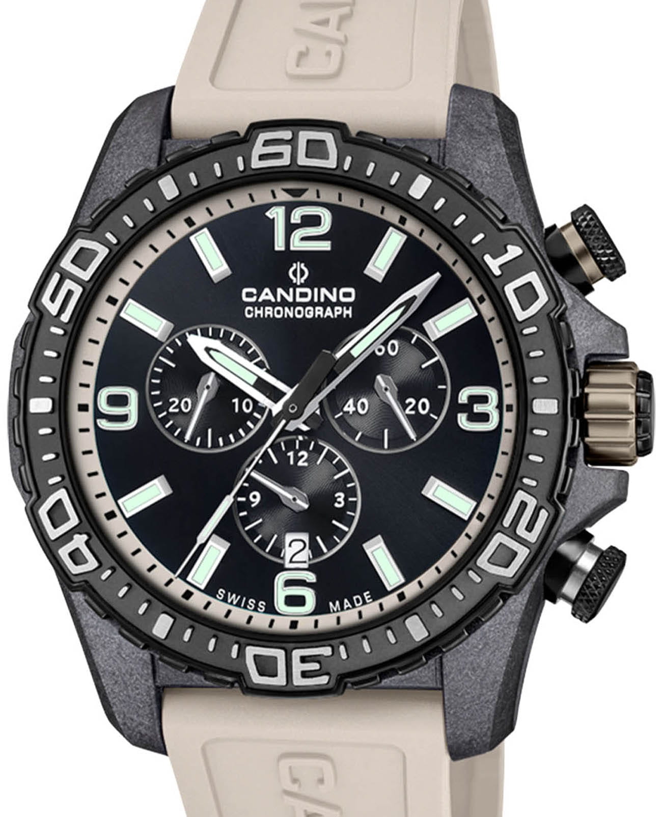 Мужские швейцарские часы с хронографомХронографФункция позволяет измерять отрезки времени с особой точностью: часы, минуты, секунды. Верным признаком хронографа является наличие на циферблате 3 дополнительных окошек-счётчиков. Candino Chronos C4779/1 — это воплощение швейцарского мастерства и элегантности. Оснащённые высокоточным кварцевым механизмом, они обеспечивают безупречное измерение времени. Сапфировое стеклоСапфировое стеклоПрочный и надёжный материал из кристалла сапфира синтетического происхождения, характеризующийся особой твёрдостью и устойчивостью к царапинам и повреждениям. защищает циферблат от мелких царапин и повреждений, сохраняя его кристальную чистоту.
