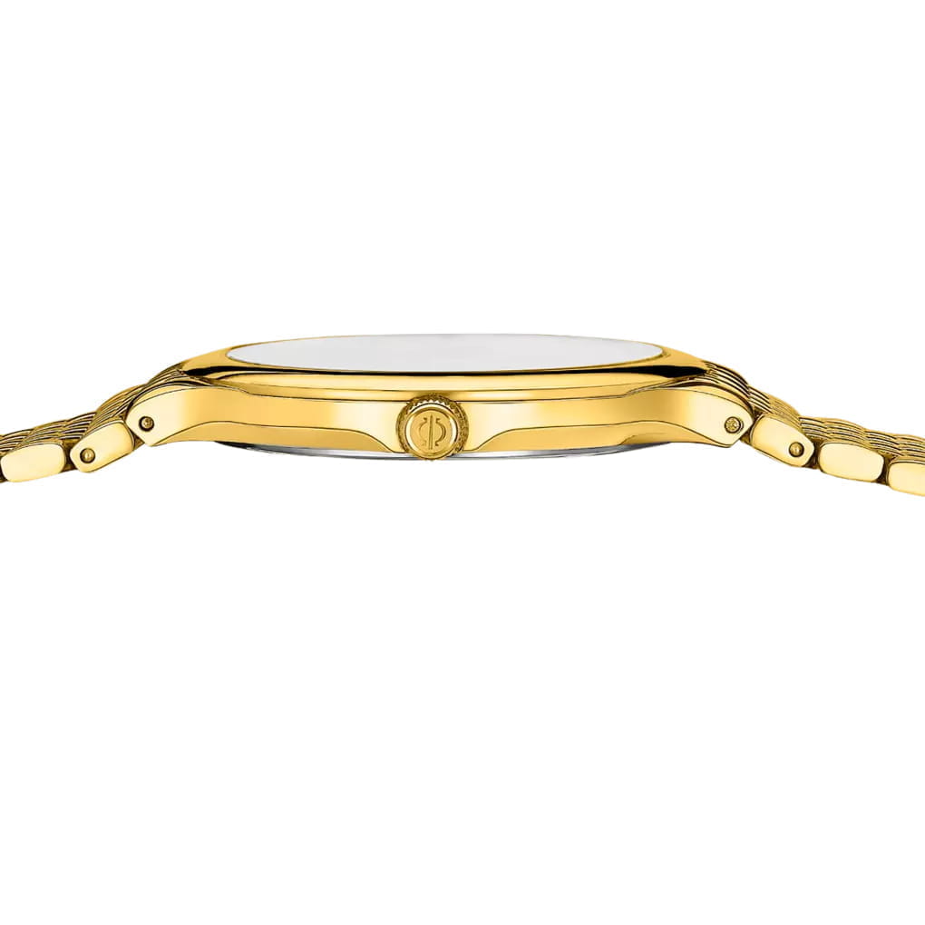 Мужские кварцевые часы Candino из коллекции Series 1947 — это сочетание минимализма, швейцарского качества и современного дизайна. Корпус диаметром 39 мм и толщиной 6 мм выполнен из нержавеющей стали 316L с PVD-покрытиемPVDУльтратонкое покрытие наносится в технике вакуумного напыления, сочетает в себе нитрид титана особой прочности со слоем золота или оксида хрома. Несёт в себе декоративную или защитную функцию. жёлтого золота. Циферблат белого цвета оформлен двумя стрелками без индикации даты, что придаёт дизайну чистоту и элегантность. Циферблат защищён сапфировым стекломСапфировое стеклоПрочный и надёжный материал из кристалла сапфира синтетического происхождения, характеризующийся особой твёрдостью и устойчивостью к царапинам и повреждениям., устойчивым к царапинам. Механизм — кварцевый произведённый в Швейцарии. Часы оснащены стальным браслетом с PVD-покрытиемPVDУльтратонкое покрытие наносится в технике вакуумного напыления, сочетает в себе нитрид титана особой прочности со слоем золота или оксида хрома. Несёт в себе декоративную или защитную функцию. жёлтого золота на застёжке «бабочка» с кнопкамиЗастёжка "бабочка"Такой вид застёжки дополняется предохранителями, помогающими избежать случайного раскрытия браслета. Обладают изящным исполнением. . Водонепроницаемость 50 м позволяет использовать часы в повседневных условиях. Гарантия — 2 года. Идеальный выбор для тех, кто ценит лаконичный стиль, точность и надёжность.