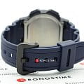 Наручные часы отличаются спортивным стилем. Броская модель выдержана в классической синей цветовой гамме, благодаря чему она становится идеальным вариантом на каждый день. Ударопрочный корпусУдаропрочный корпусМеханизм заключён в корпус, выполненный из современных материалов, устойчивых к ударам, механическим повреждениям и падению с высоты: инновационный пластик, карбон, нержавеющая сталь, титан. выполнен из пластика, материал устойчив к повреждениям. Кварцевый механизм работает от батарейки, рассчитанной на 10 лет. Водонепроницаемость 100 метров. Светодиодная подсветкаСветодиодная подсветкаСветодиодная или LED-подсветка обеспечивает появление яркого холодного свечения за счёт LED-элементов - маленьких лампочек. Они потребляют минимальное количество энергии, чаще всего можно встретить 1 светодиод, в нижней части циферблата. дисплея. Секундомер, 5 будильников, мировое времяМировое время Полезное часовое усложнение, отображающее время в основных городах и известных областях по всему миру, оно связано с часовыми поясами, удобно для путешественников и бизнесменов. , таймер, календарь. Прочное органическое стекло. Габариты: 43,7 x 48,1 x 13,7 мм.