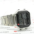 Брендовый аксессуар в серебристо-чёрной расцветке обладает крупным циферблатом в оригинальном исполнении. Массивный корпус выполнен из пластика, материал отличается устойчивостью к ударам и повреждениям. Модель с кварцевым механизмом работает от батарейки, характеризующейся продолжительным сроком службы до 10 лет. Прочное органическое стекло. Светодиодная подсветкаСветодиодная подсветкаСветодиодная или LED-подсветка обеспечивает появление яркого холодного свечения за счёт LED-элементов - маленьких лампочек. Они потребляют минимальное количество энергии, чаще всего можно встретить 1 светодиод, в нижней части циферблата. дисплея. Стальной браслет с безопасной предохранительной застёжкой. Функции: таймер, секундомер, будильник, мировое времяМировое время Полезное часовое усложнение, отображающее время в основных городах и известных областях по всему миру, оно связано с часовыми поясами, удобно для путешественников и бизнесменов. , календарь до 2099 года. Габариты: 45 x 42,1 x 12,5 мм.