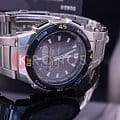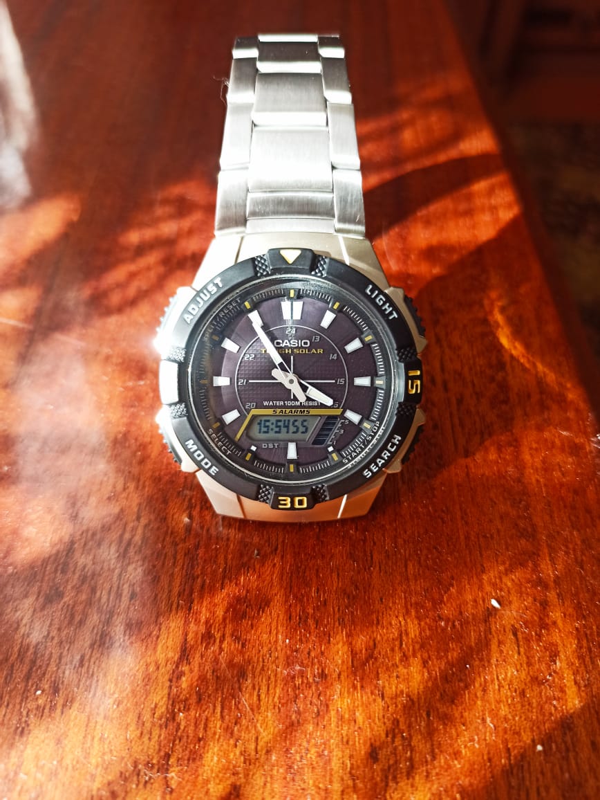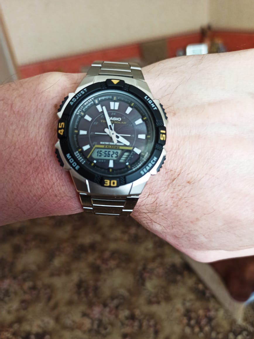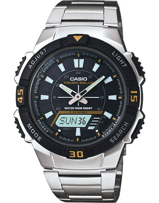 Японские спортивные мужские наручные часы AQ-S800WD-1ER с кварцевым механизмом. Оснащены функциями термометра, будильника, таймера, секундомера, мирового времени. Корпус - Пластиковый; Стекло - Пластик; Водозащита - 100 м. (WR 100); Материал ремешка - Нержавеющая сталь; Цвет ремешка - Серебристый; Цвет циферблата - Черный.