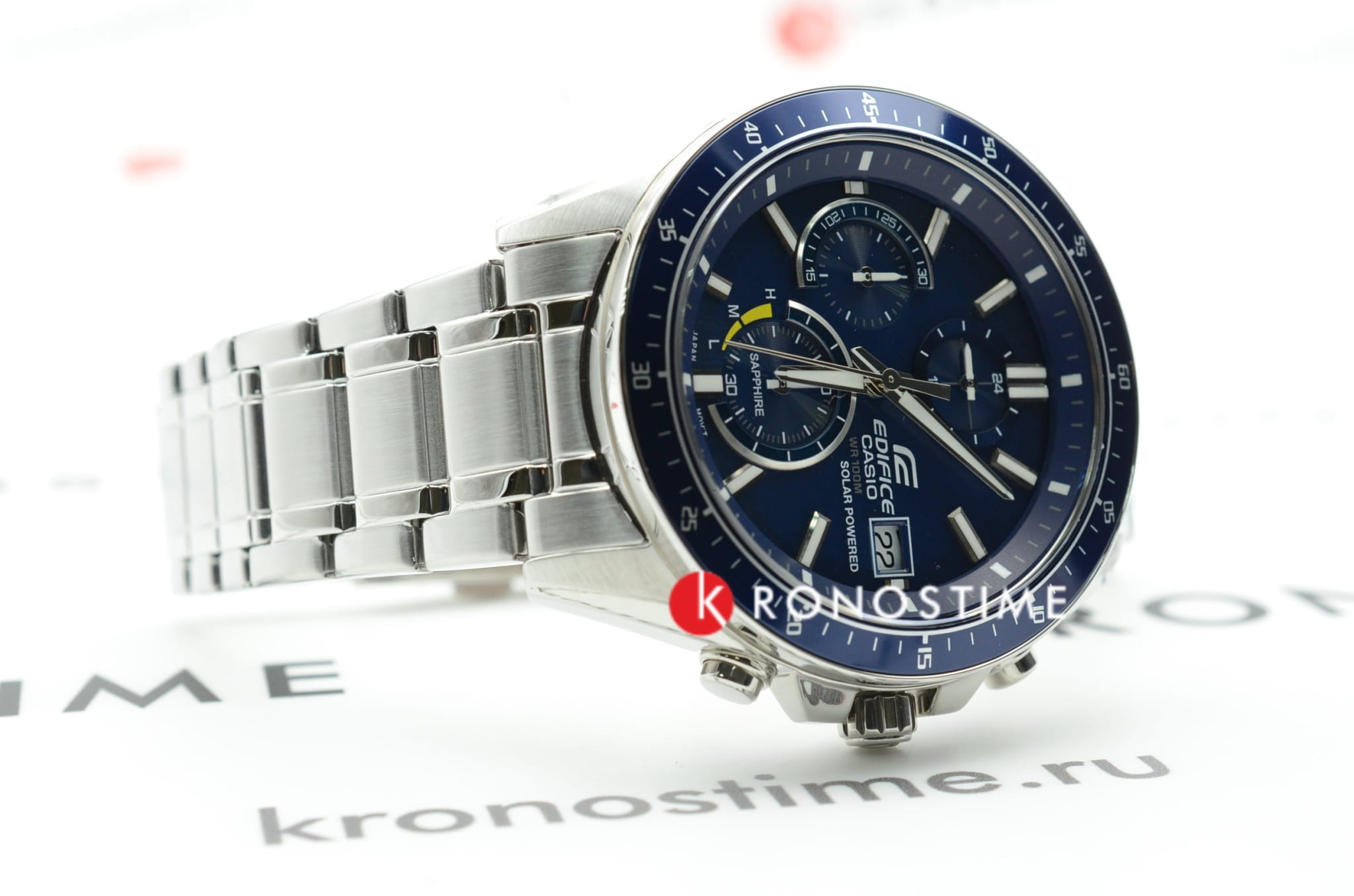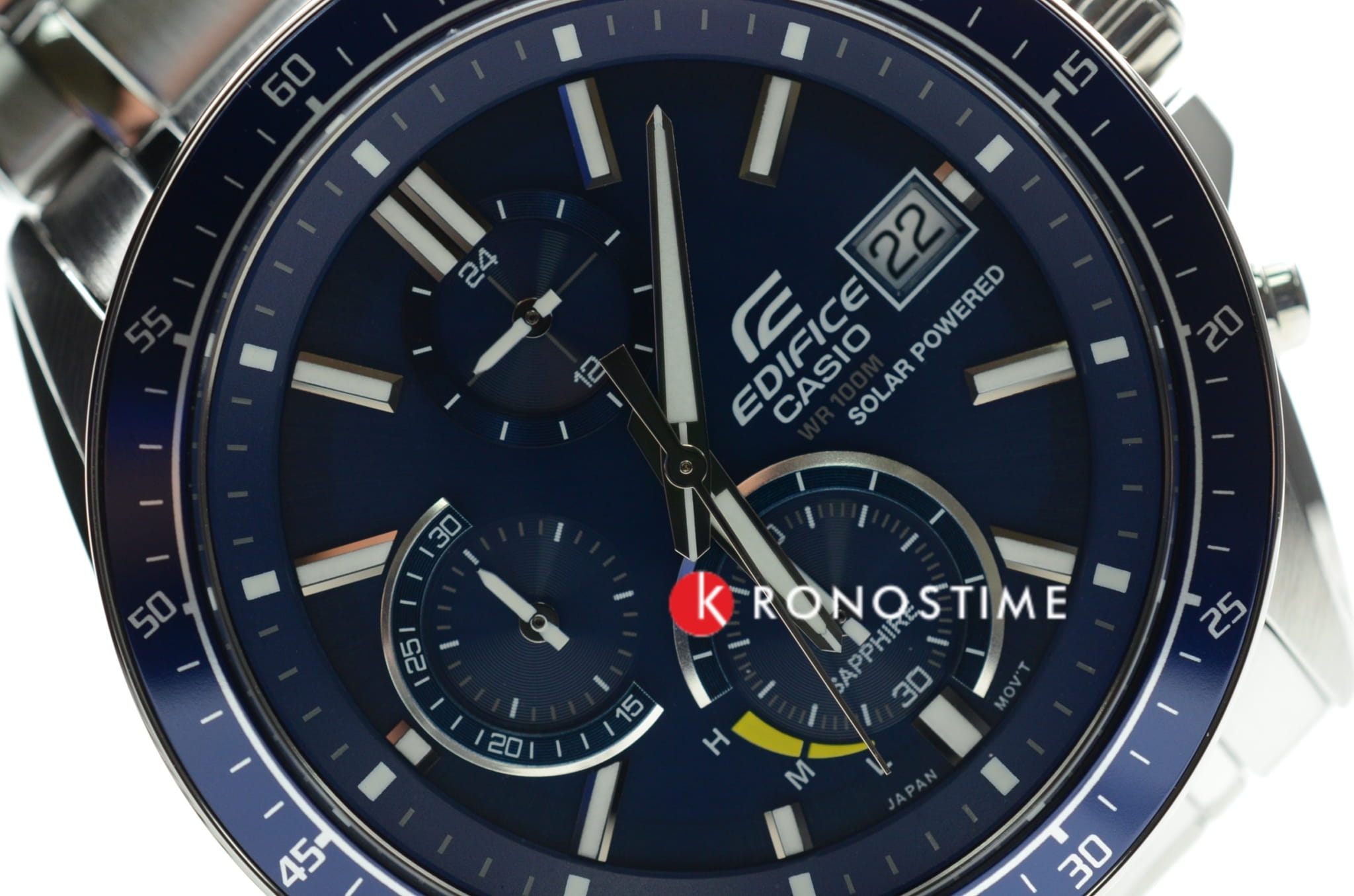 Спортивный хронографХронографФункция позволяет измерять отрезки времени с особой точностью: часы, минуты, секунды. Верным признаком хронографа является наличие на циферблате 3 дополнительных окошек-счётчиков. имеет синий циферблат с жёлтым цветовым акцентом, счётчики расположены на левой стороне. Стрелки и часовые метки имеют люминесцентное покрытиеЛюминесцентное покрытиеПозволяет считывать показания времени в темноте. Производители наносят на стрелки, часовые индексы, безель или поверхность циферблата светонакопительный состав, дающий холодное свечение., позволяющее без проблем считывать показатели времени в темноте. Браслет из нержавеющей стали надёжно держится на запястье, не нужно беспокоиться о случайном раскрытии застёжки. Технология . Стекло из сапфира. Водозащита до 100 метров. Габариты: 52 x 46,1 x 11,8 мм.