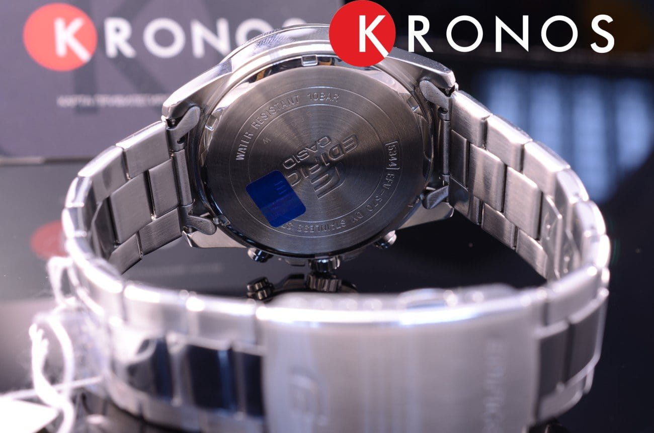 Японские мужские часы-хронографХронографФункция позволяет измерять отрезки времени с особой точностью: часы, минуты, секунды. Верным признаком хронографа является наличие на циферблате 3 дополнительных окошек-счётчиков. Casio Edifice EFV-570D-2A. Минеральное стеклоМинеральное стеклоМинеральное стекло представляет собой искусственно выращенный минерал кварца. Такое стекло отличается особой устойчивостью к повреждениям и царапинам. Уступает по некоторым качествам сапфировому стеклу. устойчивое к появлению царапин, обладающее высокой прозрачностью. Копрус часов изготовлен из нержавеющей стали. БезельБезельВнешний ободок, закрепляющий стекло. В спортивных часах так называется поворотное кольцо с делениями на циферблате, выполняет роль таймера – замеряет отрезки времени на шкале. Неподвижный безель – элемент декора. Однонаправленно вращающийся безель на дайверских часах позволяет фиксировать моменты погружения и выныривания на поверхность. из стали с IP-покрытиемIP-покрытиеМетод ионного напыления. Демонстрирует повышенную устойчивость к истиранию, окислению и химическим веществам. Под воздействием высокого давления и температуры около 1500°C молекулы металла надёжно соединяются с частицами корпуса часов.. Светодиодная автоподсветка NeobriteПодсветка NeobriteИспользование светонакопительных составов на основе сульфида цинка или алюмината стронция, яркий свет можно наблюдать на протяжении 6-10 часов после «зарядки» часов около источника света. - при повороте часов в сторону лица подсветка дисплея осуществляется автоматически. Настраиваемое послесвечение 1,5 или 3сек. Записная книжка на 30 ячеек памяти для записи имен и телефонных номеров, каждая запись может включать в себя текст из 8 букв и 16 цифр. СекундомерСекундомерСекундоме́р — прибор, способный измерять интервалы времени с точностью до долей секунды. с точностью измерения 1/100 секунды и измерением до 23 часов 59 минут 59,99 cек. ТаймерТаймерОтсчитывает секунды в обратном направлении в заданном интервале времени. обратного отсчета (диапазон времени 24 часа), автоматический календарь, 12/24 отображение времени. Мировое времяМировое время Полезное часовое усложнение, отображающее время в основных городах и известных областях по всему миру, оно связано с часовыми поясами, удобно для путешественников и бизнесменов. – 30 городов (29 часовых поясов). 5 будильниковБудильникБуди́льник — часы, в заданный момент времени подающие звуковой, световой и/или в редких случаях другой сигнал., один с функцией Snooze, ежечасный сигнал. Класс водозащиты: 100 метров, позволит плавать, нырять и заниматься другими водными видами спорта. Стальной браслет на раскладной застёжкеРаскладная застёжкаТакой тип застёжки используется только на браслетах из металла. Она никогда не раскрывается полностью, происходит разделение на 2 и более частей. Раскладывающая застёжка снизит вероятность потери часов к минимуму..