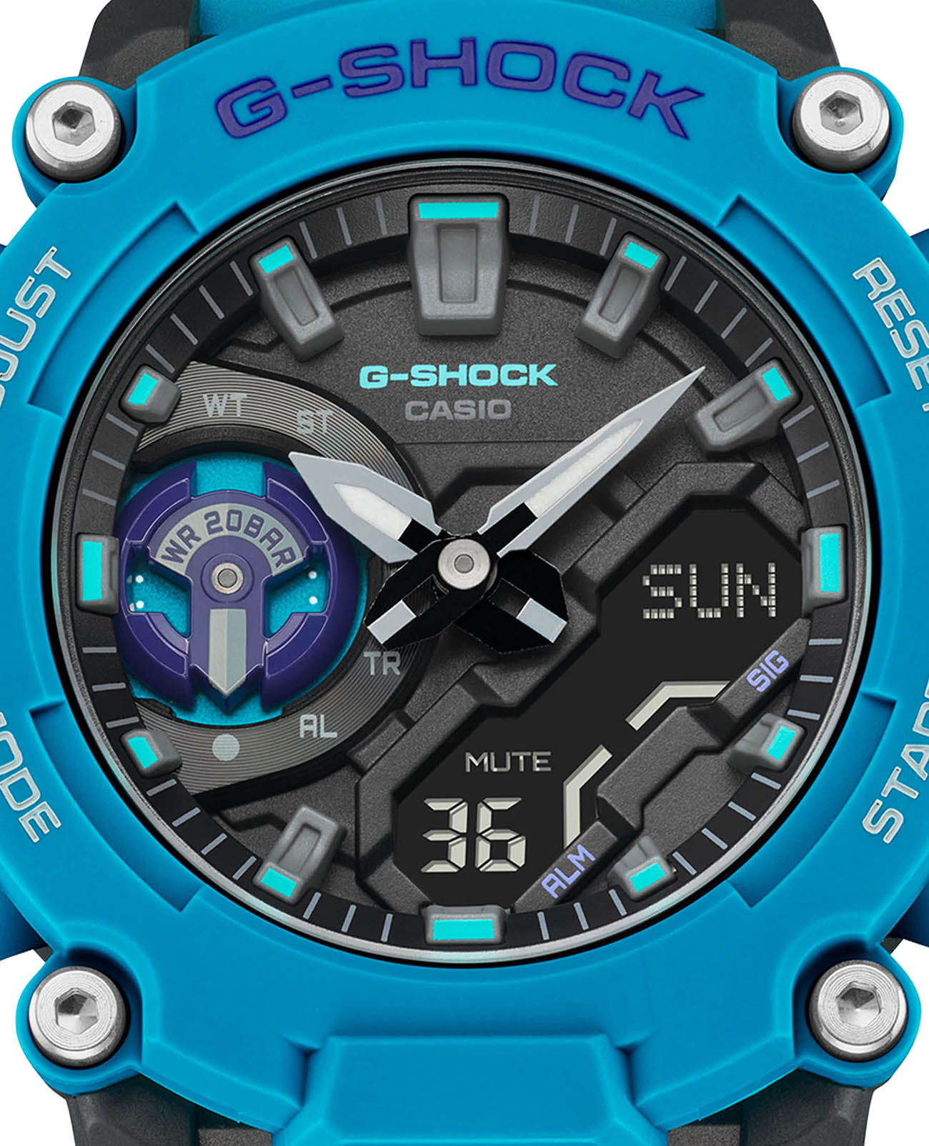 Надежные часы с глубоким и объемным циферблатом прекрасно подойдут для любителей активного образа жизни. Мужские наручные часы Casio G-Shock GA-2200-2A, кварцевый механизм с высокой точностью. Класс водозащиты: 200 метров, позволит плавать, нырять и заниматься другими водными видами спорта. Корпус часов изготовлен из пластика и карбона. Новая серия часов со структурой Carbon Core GuardCarbon Core Guard Новейшая структура корпуса, разработанная Casio. Полиуретановая пластина дополнительно усилена карбоновыми вставками, что придаёт специальную защиту от механических повреждений. Карбон отличается лёгкостью и прочностью.. Крупный пластиковый ударопрочный корпусУдаропрочный корпусМеханизм заключён в корпус, выполненный из современных материалов, устойчивых к ударам, механическим повреждениям и падению с высоты: инновационный пластик, карбон, нержавеющая сталь, титан. с карбоновыми волокнами более прочный и, в то же время, более легкий. Этот же материал защищает внутренний модуль от повреждений и деформаций при ударах. Двойная светодиодная подсветкаСветодиодная подсветкаСветодиодная или LED-подсветка обеспечивает появление яркого холодного свечения за счёт LED-элементов - маленьких лампочек. Они потребляют минимальное количество энергии, чаще всего можно встретить 1 светодиод, в нижней части циферблата. позволяет видеть в полной темноте не только аналоговый циферблат, но и цифровой дисплей. Послесвечение. Цвет подсветки: белый. Подсветка NeobriteПодсветка NeobriteИспользование светонакопительных составов на основе сульфида цинка или алюмината стронция, яркий свет можно наблюдать на протяжении 6-10 часов после «зарядки» часов около источника света. обеспечивает длительное послесвечение в темноте даже после кратковременного нахождения на свету. 12-ти и 24-х часовой формат времени. СекундомерСекундомерСекундоме́р — прибор, способный измерять интервалы времени с точностью до долей секунды. с двумя точностями показаний: 1/100с (до 1ч) и 1с (после 1ч) и временем измерения 24ч. Сплит-хронографСплит-хронографИспользуется для измерения продолжительности нескольких временных отрезков, начинающихся одновременно, а заканчивающихся в разное время.. ТаймерТаймерОтсчитывает секунды в обратном направлении в заданном интервале времени. обратного отсчета от 1с до 24ч. Мировое времяМировое время Полезное часовое усложнение, отображающее время в основных городах и известных областях по всему миру, оно связано с часовыми поясами, удобно для путешественников и бизнесменов. – 48 городов (31 часовой пояс), всемирное координированное время (UTCUTCВсемирное кординационное время, не имеющее привязки к географическому положению Гринвича, основывается на атомном отсчёте времени. Регулировка времени осуществляется более точно, чем устаревшее GMT.