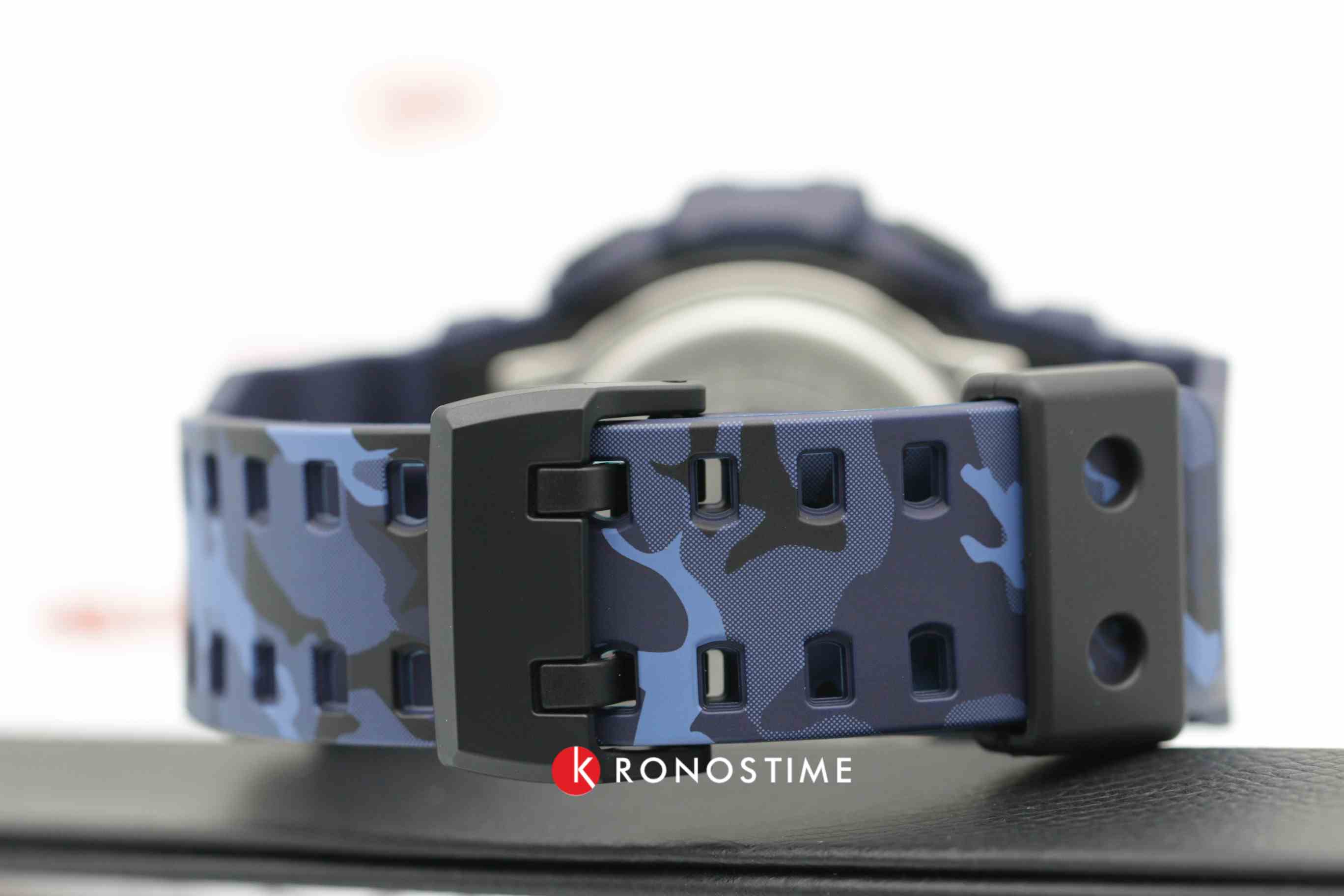 Японские мужские часы из коллекции G-Shock представляют собой стильную модель серии GA-700, которую по достоинству оценят спортивные и активные люди. Массивный циферблат с крупной индикацией времени отлично смотрится на мужском запястье, такие часы станут интересной деталью образа благодаря необычному камуфляжному оформлению синего оттенка. Практичная и функциональная модель имеет полимерный ударопрочный корпусУдаропрочный корпусМеханизм заключён в корпус, выполненный из современных материалов, устойчивых к ударам, механическим повреждениям и падению с высоты: инновационный пластик, карбон, нержавеющая сталь, титан., которому не страшны повреждения и падения с высоты. Высокоточный кварцевый механизм японского производства. Эксплуатационный срок батарейки - 5 лет. Яркая автоматическая светодиодная подсветкаСветодиодная подсветкаСветодиодная или LED-подсветка обеспечивает появление яркого холодного свечения за счёт LED-элементов - маленьких лампочек. Они потребляют минимальное количество энергии, чаще всего можно встретить 1 светодиод, в нижней части циферблата. белого цвета. Минеральное стеклоМинеральное стеклоМинеральное стекло представляет собой искусственно выращенный минерал кварца. Такое стекло отличается особой устойчивостью к повреждениям и царапинам. Уступает по некоторым качествам сапфировому стеклу.. Водонепроницаемость 200 метров. 12/24-часовая система отображения времени. Прочный пластиковый ремешок. Ударопрочный корпусУдаропрочный корпусМеханизм заключён в корпус, выполненный из современных материалов, устойчивых к ударам, механическим повреждениям и падению с высоты: инновационный пластик, карбон, нержавеющая сталь, титан. защищает механизм от ударов и вибрации. Циферблат подсвечивается ярким светодиодомСветодиодная подсветкаСветодиодная или LED-подсветка обеспечивает появление яркого холодного свечения за счёт LED-элементов - маленьких лампочек. Они потребляют минимальное количество энергии, чаще всего можно встретить 1 светодиод, в нижней части циферблата.. Мировое времяМировое время Полезное часовое усложнение, отображающее время в основных городах и известных областях по всему миру, оно связано с часовыми поясами, удобно для путешественников и бизнесменов. – 48 городов (31 часовой пояс), всемирное координированное время (UTCUTCВсемирное кординационное время, не имеющее привязки к географическому положению Гринвича, основывается на атомном отсчёте времени. Регулировка времени осуществляется более точно, чем устаревшее GMT.