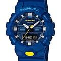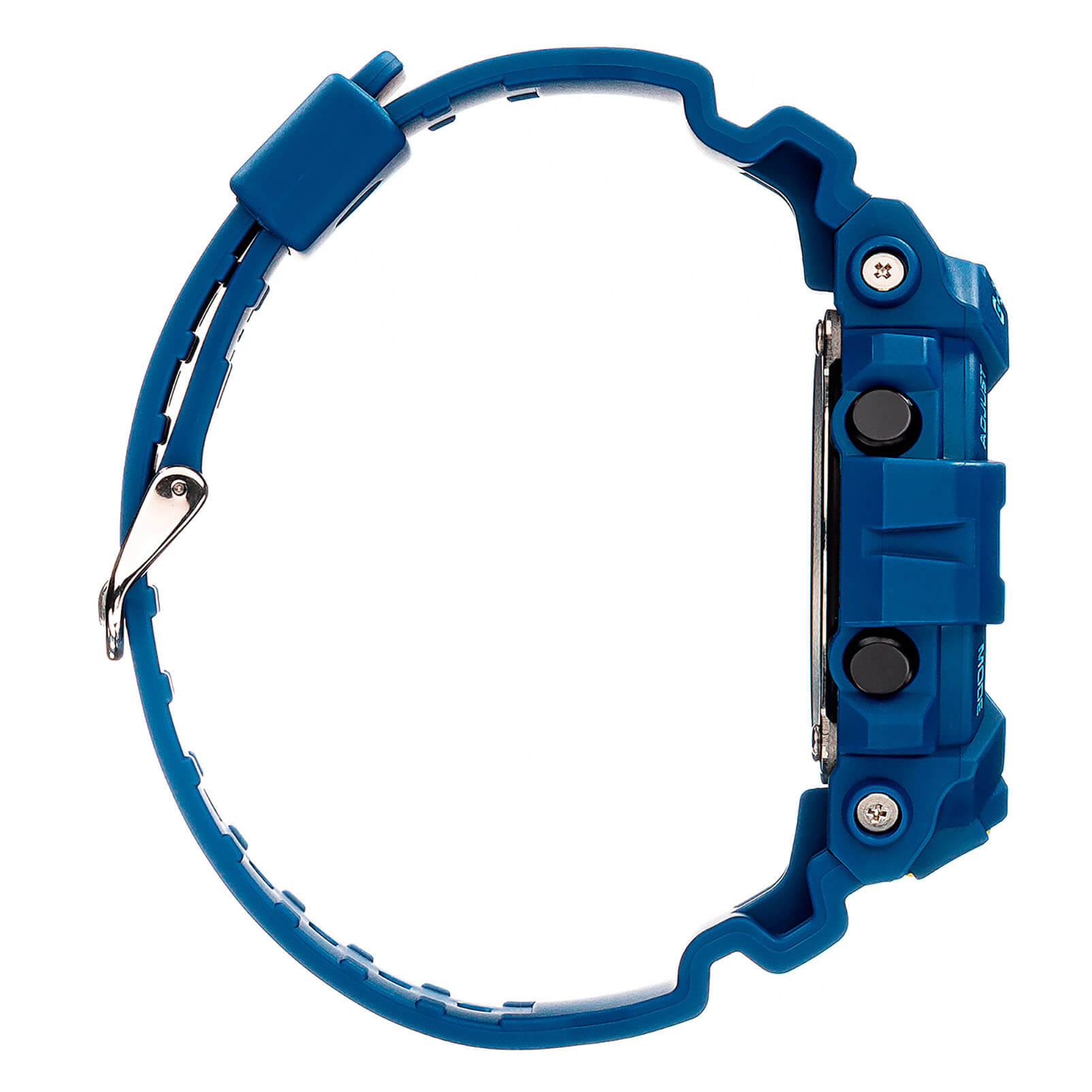 Ярко-синяя модель с голубыми и жёлтыми деталями точно станет запоминающейся деталью вашего образа. Часы получили обновлённый дизайн и уменьшенный противоударный корпусУдаропрочный корпусМеханизм заключён в корпус, выполненный из современных материалов, устойчивых к ударам, механическим повреждениям и падению с высоты: инновационный пластик, карбон, нержавеющая сталь, титан., если сравнивать с моделями серии GA-700. Он выполнен из полимерного пластика, что гарантирует повышенную устойчивость к ударам, повреждениям, падению с высоты. Японский кварцевый калибр с точностью хода +/- 15 секунд в месяц. Срок службы батарейки - 3 года. Функция выключения и включения звука кнопок. Стрелки с люминесцентным покрытиемЛюминесцентное покрытиеПозволяет считывать показания времени в темноте. Производители наносят на стрелки, часовые индексы, безель или поверхность циферблата светонакопительный состав, дающий холодное свечение.. Двойная светодиодная подсветкаСветодиодная подсветкаСветодиодная или LED-подсветка обеспечивает появление яркого холодного свечения за счёт LED-элементов - маленьких лампочек. Они потребляют минимальное количество энергии, чаще всего можно встретить 1 светодиод, в нижней части циферблата.. Водозащита 20 бар. Минеральное стекло. Полимерный браслет. Секундомер, таймер обратного отсчёта, мировое времяМировое время Полезное часовое усложнение, отображающее время в основных городах и известных областях по всему миру, оно связано с часовыми поясами, удобно для путешественников и бизнесменов. , 5 ежедневных будильников, автоматический календарь. Габариты: 54,1 x 48,6 x 15,5 мм.