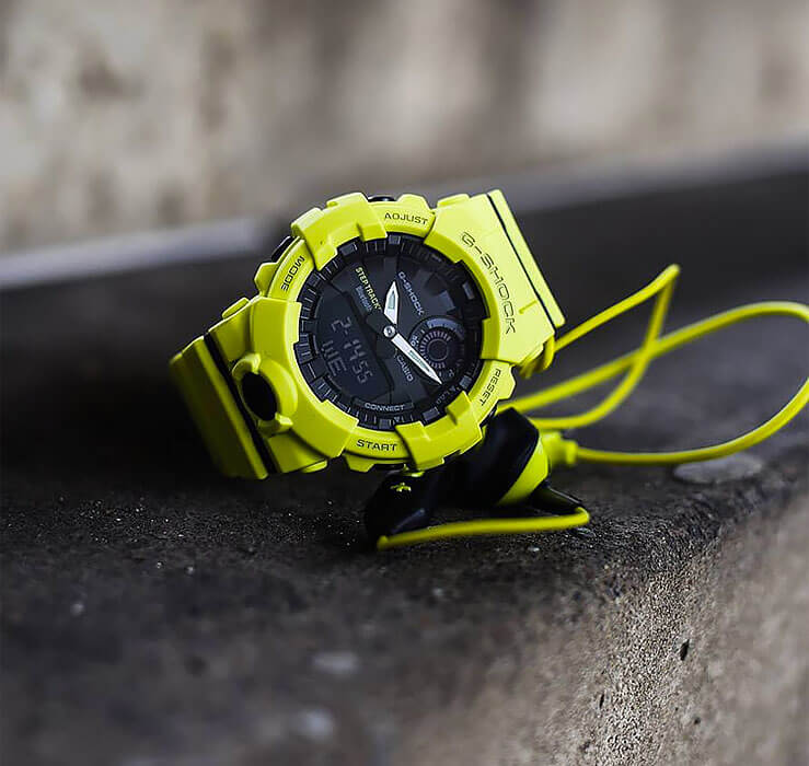 Японские мужские часы Casio G-Shock GBA-800-9AER из коллекции G-Shock - функциональный девайс станет лучшим вариантом для пробежек и отслеживания физической активности благодаря наличию шагомера.