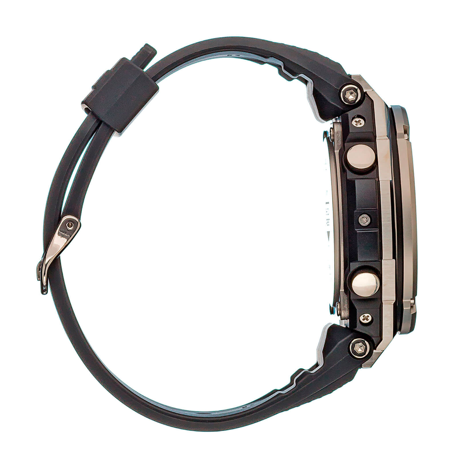 Лаконичный дизайн напоминает о классическом облике механических часов, серебристый блеск нержавеющей стали 316L никогда не потеряет актуальности. Противоударный корпусУдаропрочный корпусМеханизм заключён в корпус, выполненный из современных материалов, устойчивых к ударам, механическим повреждениям и падению с высоты: инновационный пластик, карбон, нержавеющая сталь, титан. с лёгкостью выдерживает любые нагрузки и падения с высоты, дополнительную устойчивость к повреждениям придаёт полимерная составляющая. Модель серии G-Steel - это часы на солнечной батарее , есть индикатор заряда аккумулятора. Минеральное стекло. Циферблат со светодиодной подсветкойСветодиодная подсветкаСветодиодная или LED-подсветка обеспечивает появление яркого холодного свечения за счёт LED-элементов - маленьких лампочек. Они потребляют минимальное количество энергии, чаще всего можно встретить 1 светодиод, в нижней части циферблата.. Приём радиосигнала. Таймер, секундомер, мировое времяМировое время Полезное часовое усложнение, отображающее время в основных городах и известных областях по всему миру, оно связано с часовыми поясами, удобно для путешественников и бизнесменов. , будильник, UTCUTCВсемирное кординационное время, не имеющее привязки к географическому положению Гринвича, основывается на атомном отсчёте времени. Регулировка времени осуществляется более точно, чем устаревшее GMT.
