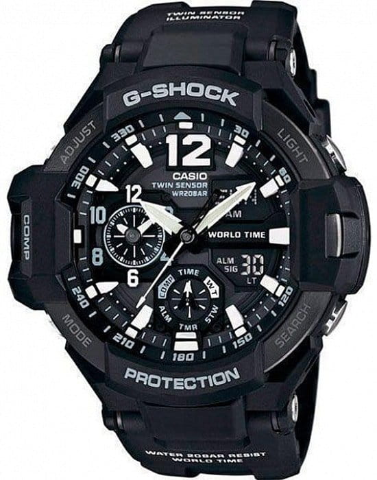 Классические наручные кварцевые мужские часы. Ударопрочный двуслойный круглый корпус часов выполнен из высокопрочной стали с IP покрытием со вставками из пластика. Синий фон циферблата и золотые 3D элементы дизайна. Водонепроницаемость часов составляет 20 ATM (возможны занятия дайвингом). Минеральное стекло, устойчивое к появлению царапин. Часы прочно удерживаются на руке ремешком из синего пластика. Неоновый дисплей Neobrite, будильник, таймер обратного отсчета, функция смещения стрелок, термометр, компас.