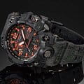Лимитированные мужские часы из коллекции Master of G выполнены в стиле миллитари. Исполнение премиум-класса, грязеустойчивые, с водонепроницаемостью в 20 атмосфер. Кварцевые часы с аналоговым и цифровым способами отображения времени, и с корпусом, выполненым из пластика и высокопрочной стали. Черный циферблат защищает надежное сапфировое стекло. Браслет ярко-оранжевого цвета из прочного пластика. Вес часов 119 грамм. Часы Casio GWG-1000-1A9 оснащены множеством дополнительных функций: компас, термометр, таймер обратного отсчета, барометр, высотомер, секундомер, индикатор запаса хода, подсветкой стрелок и дисплея. Заряжаются часы от солнечной батареи, в режиме сохранения энергии сохраняют работоспособность без подзарядки в течении 25 месяцев.