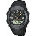 Электронные часы. Функции: 12 и 24-часовой формат времени. Секундомер. Функция повтора сигнала будильника. Телефонная книжка на 30 номеров. Корпус - Пластиковый; Стекло - Пластик; Водозащита - 100 м. (WR 100); Материал ремешка - Пластиковый; Цвет ремешка - Черный; Цвет циферблата - Черный.