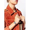 Стильные женские наручные часы в прямоугольном корпусе. Корпус - Пластиковый; Стекло - Пластик; Водозащита - 30 м. (WR 30); Материал ремешка - Нержавеющая сталь, PVD покрытие; Цвет ремешка - Коричневый; Цвет циферблата - Синий.