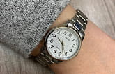Отсутствие вычурных деталей и минималистичный дизайн позволяют часам оставаться актуальными на долгие годы. Круглый, аккуратный корпус сделан из латуни. Гладкий, плавно отражающий падающий цвет браслет выполнен из нержавеющей стали. На белом циферблате расположены отчетливые, черные арабские цифры. Прочное минеральное стекло надежно защищает часы от повреждений. Тип механизма - кварцевый. Водонепроницаемость равна 50 WR.